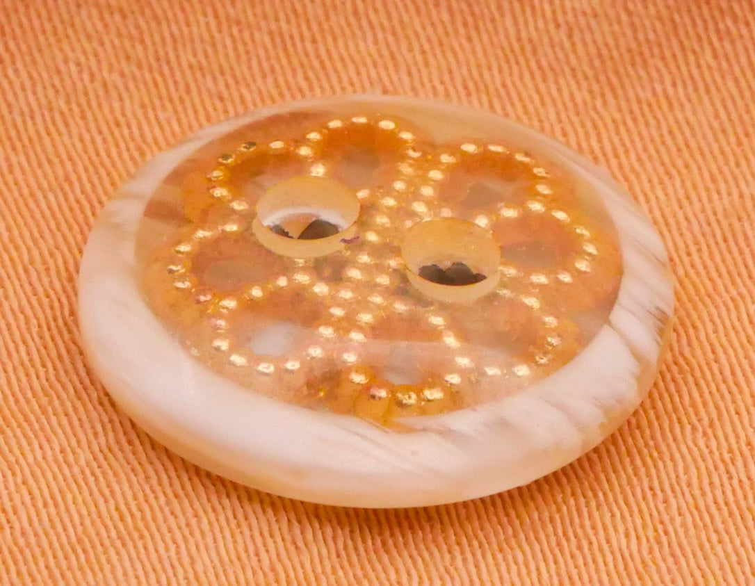 Love these! Gold metal filigree clover design in plastic with marbled coloring on edge and back. Sold in set of three. These vintage buttons measure 15mm / .59" in diameter.