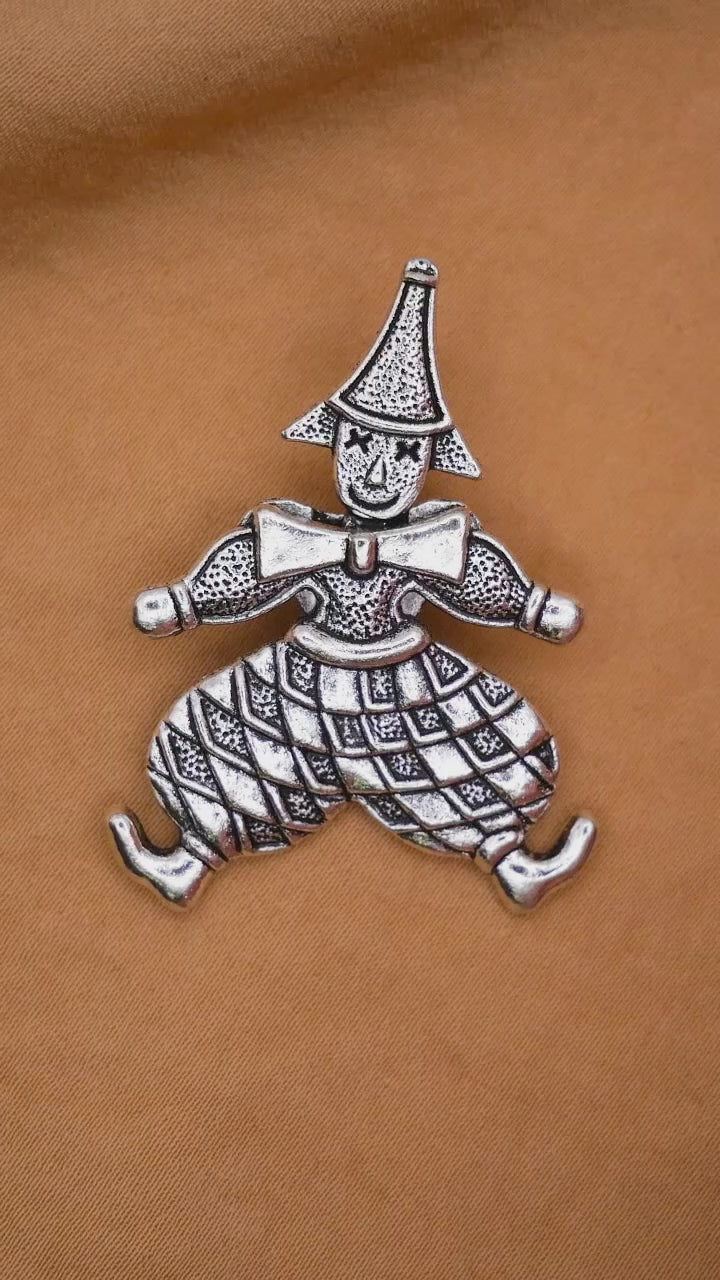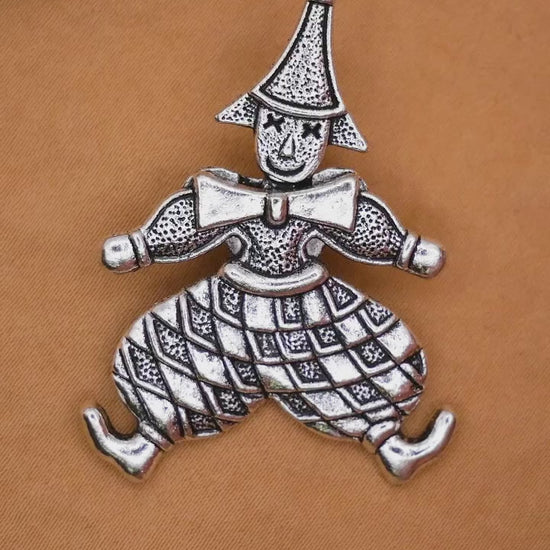 Clown Jester Moveable Silver Metal Large Button 31x41mm