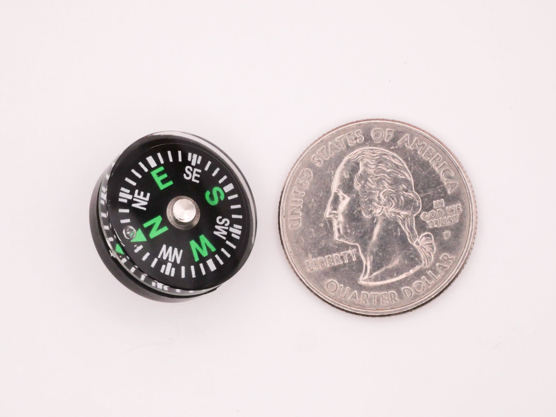 Very cool realistic look compass button. Has liquid inside and is MOVEABLE! This plastic button measures 20mm / .79" in diameter.