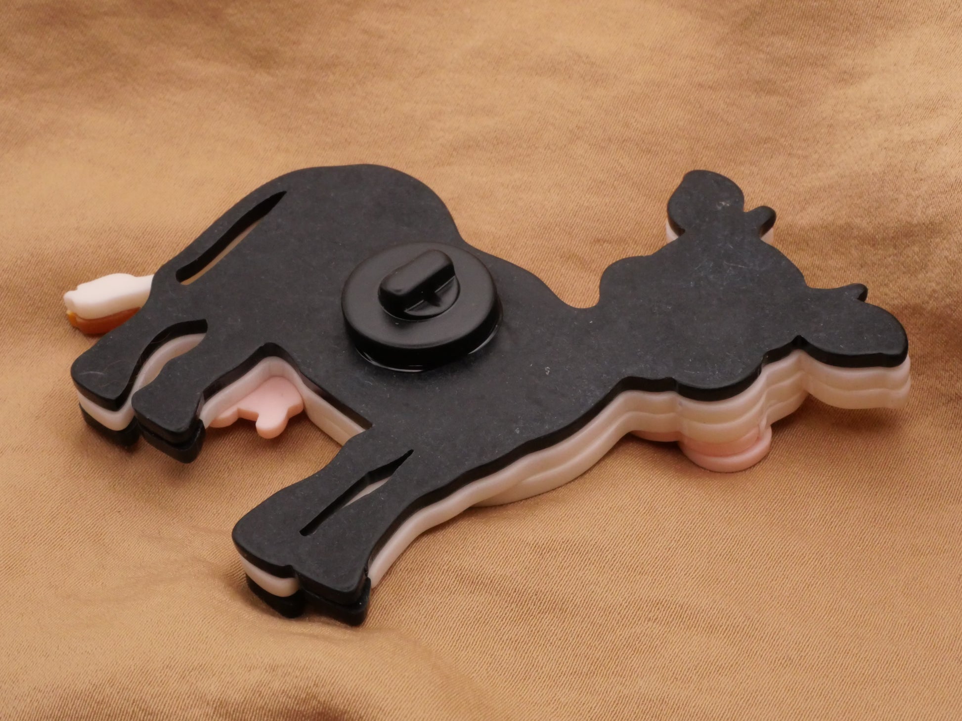 Cutie! Ayrshire spotted cattle cow large acrylic plastic button. Measures 66 x 71mm / 2.6" x 2.8".