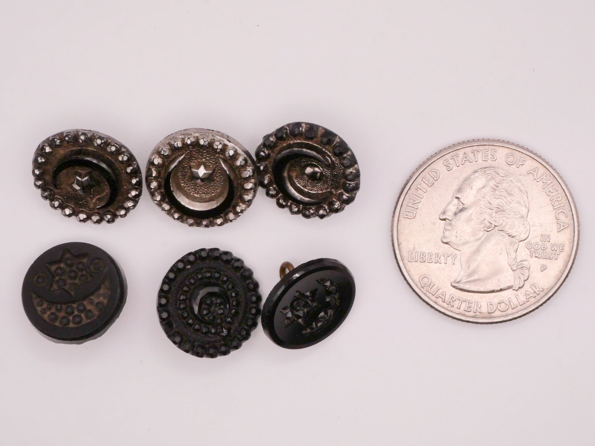 Crescent Moon Star Antique Black Glass Button Various 14-15mm