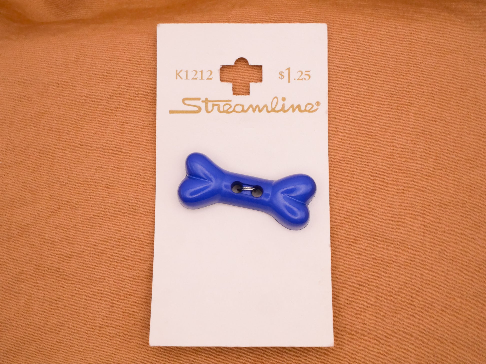 Dog Bone Blue Plastic Carded Button 14x34mm