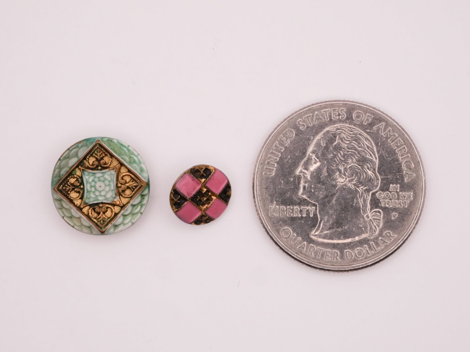Enamel Green or Pink Brass Metal Button Various 9-14mm