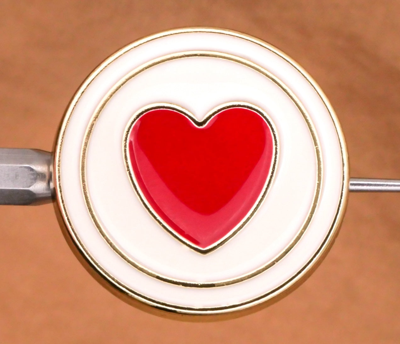 Enamel Heart Circle Button Red Off-White Gold Metal Button 25mm