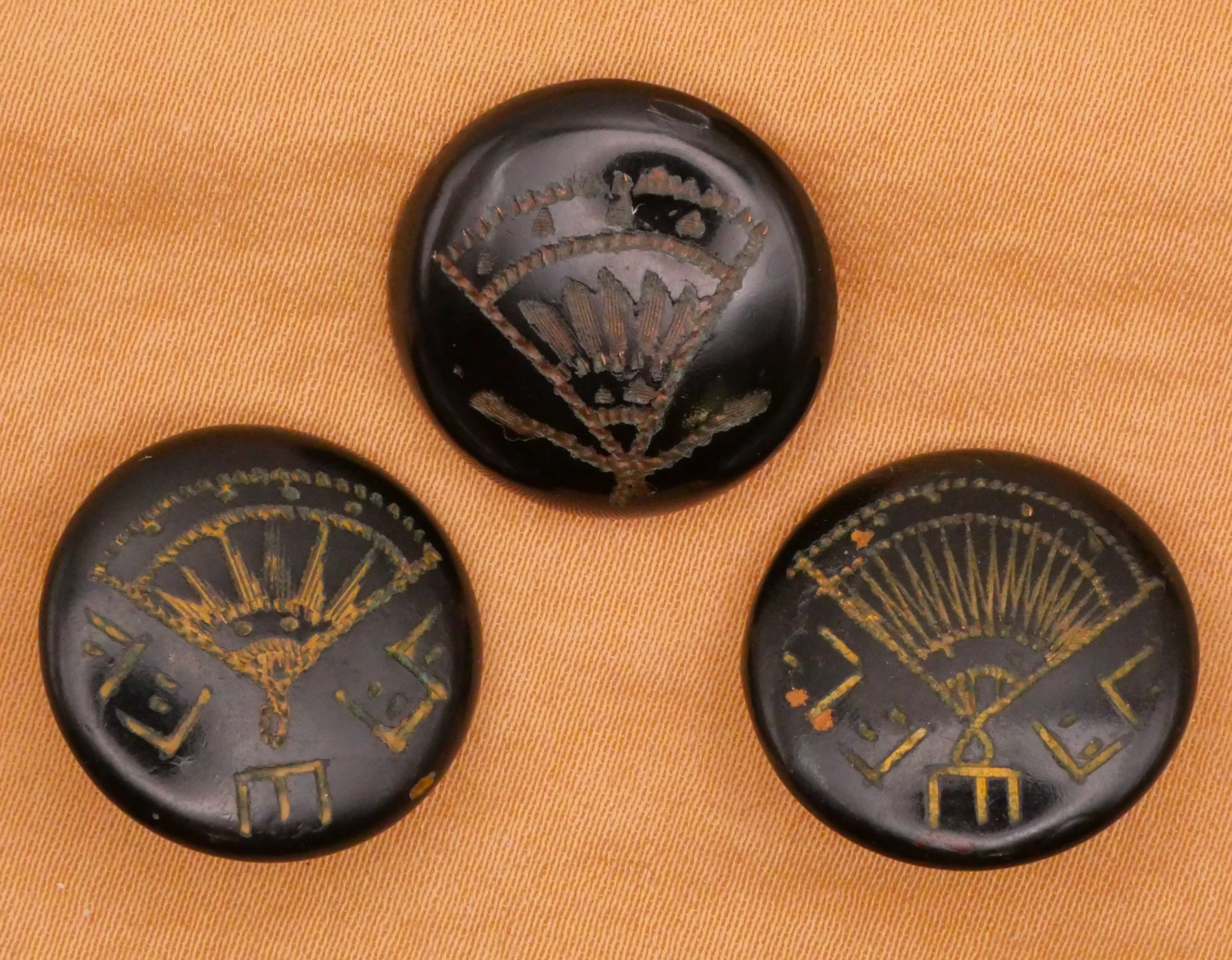 Fan Etched Black Lacquer Antiqued Metal Button Various 18-19mm