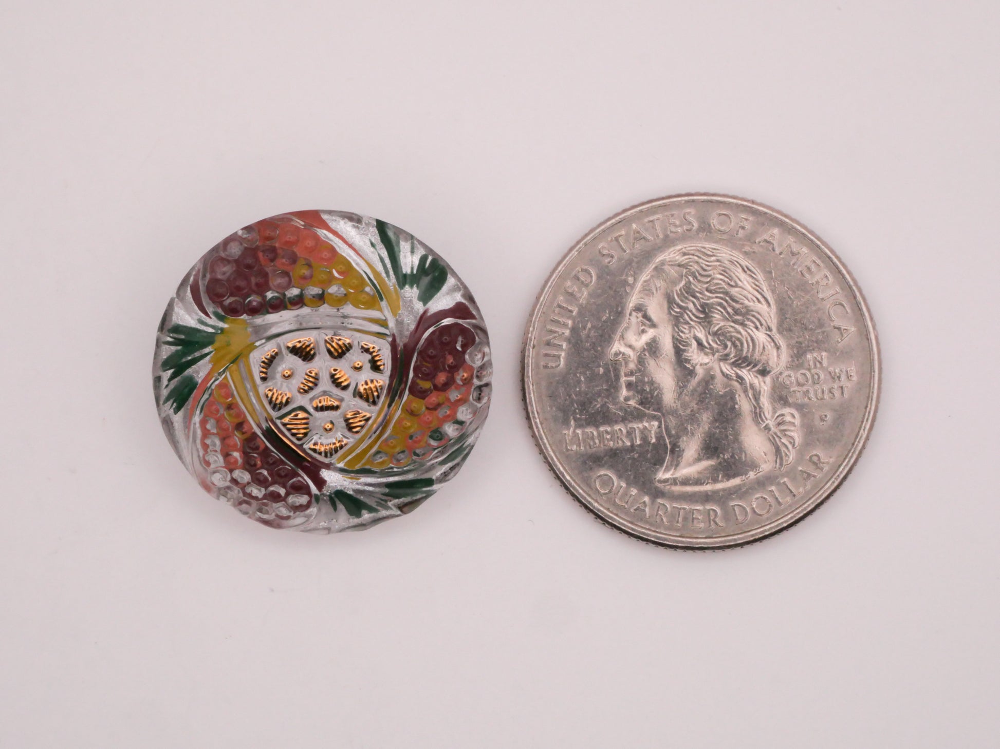 Flower Paisley Reverse Painted Czech Glass Button 22mm