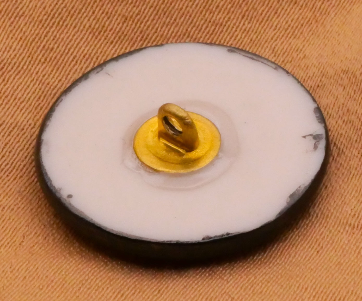 Gorgeous hand-painted porcelain ceramic button with colorful flowers and bold black border. Really stunning button. Measures 19mm / .75" in diameter.