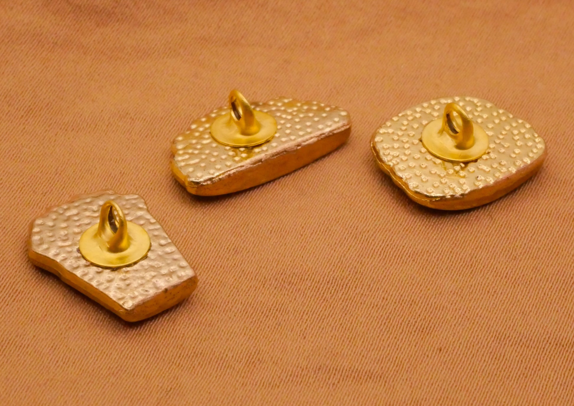 So cool! Enamel gold metal food buttons, choose between fries, taco, or burger. Fries and hamburger have rhinestone accents. These buttons measure between 10-18mm / .39"-.71". Choose left (fries), center (taco), or right (hamburger).
