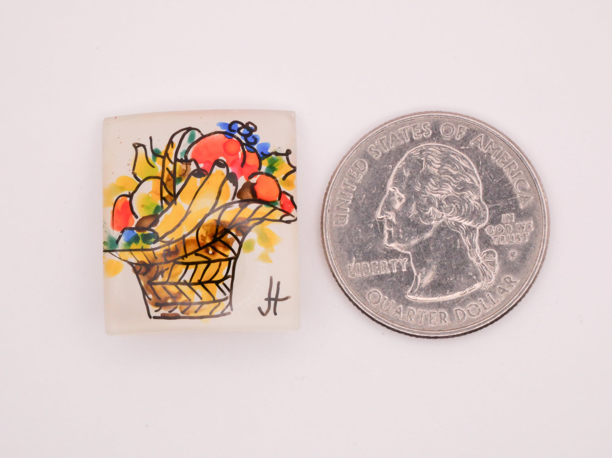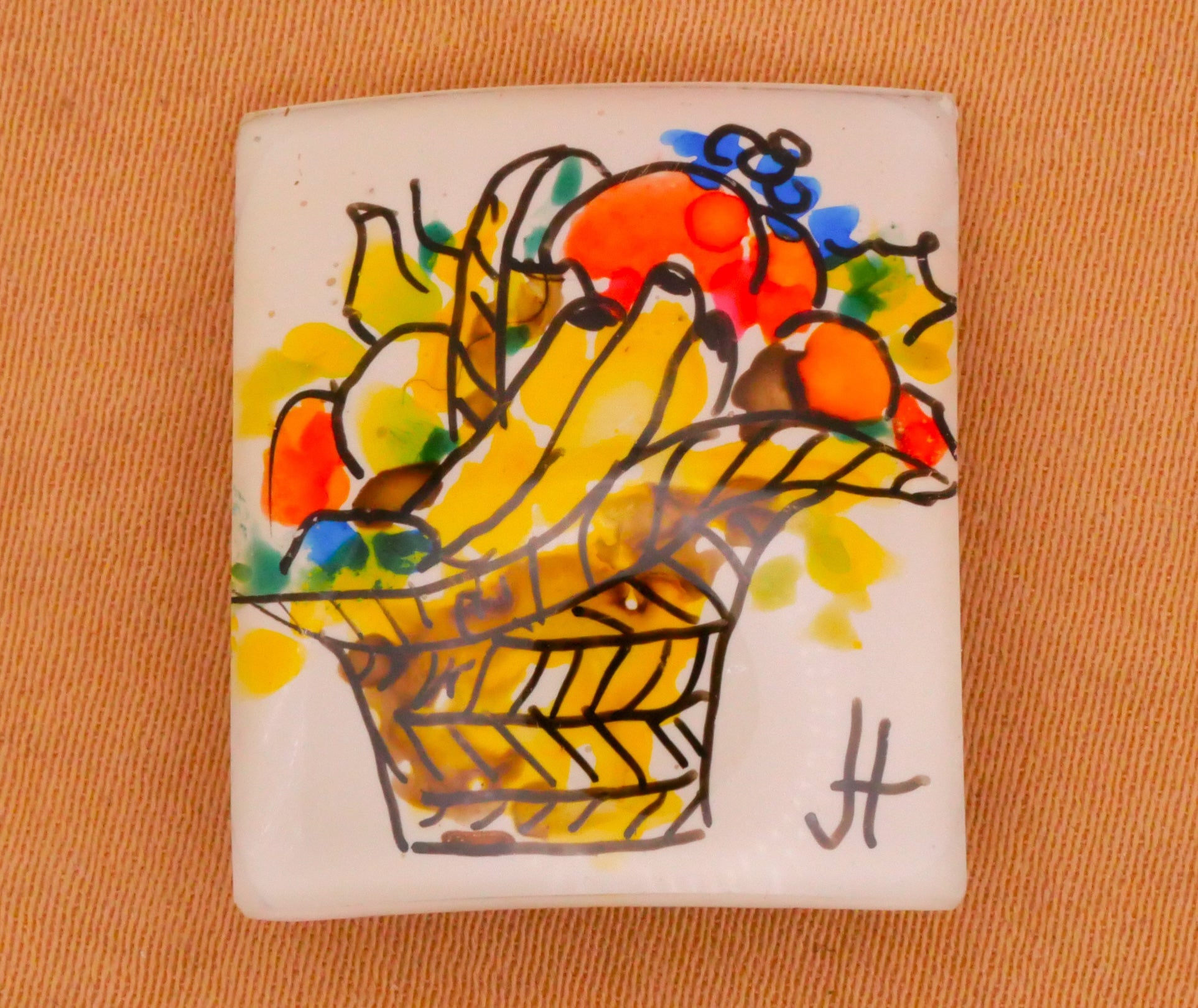 Fruit Basket Joyce Hendrickson Studio Hand-Painted Glass Button 21x24mm
