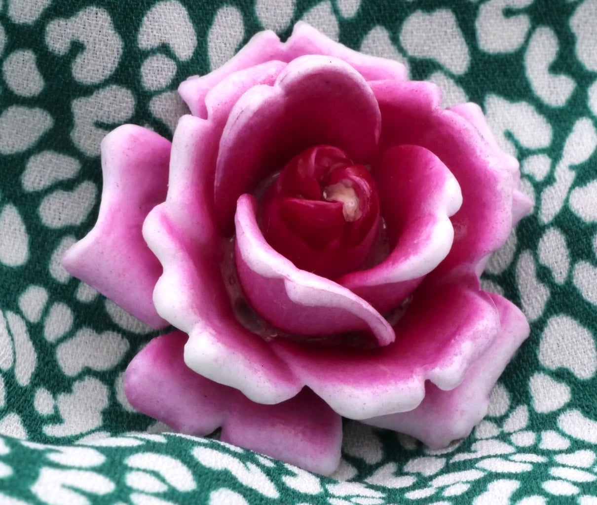 Gorgeous vintage fuchsia early plastic button! This is large, but delicate and lightweight. The rose is "new old stock" from West Germany and has a new button back. Measures 36mm / 1.42" across.