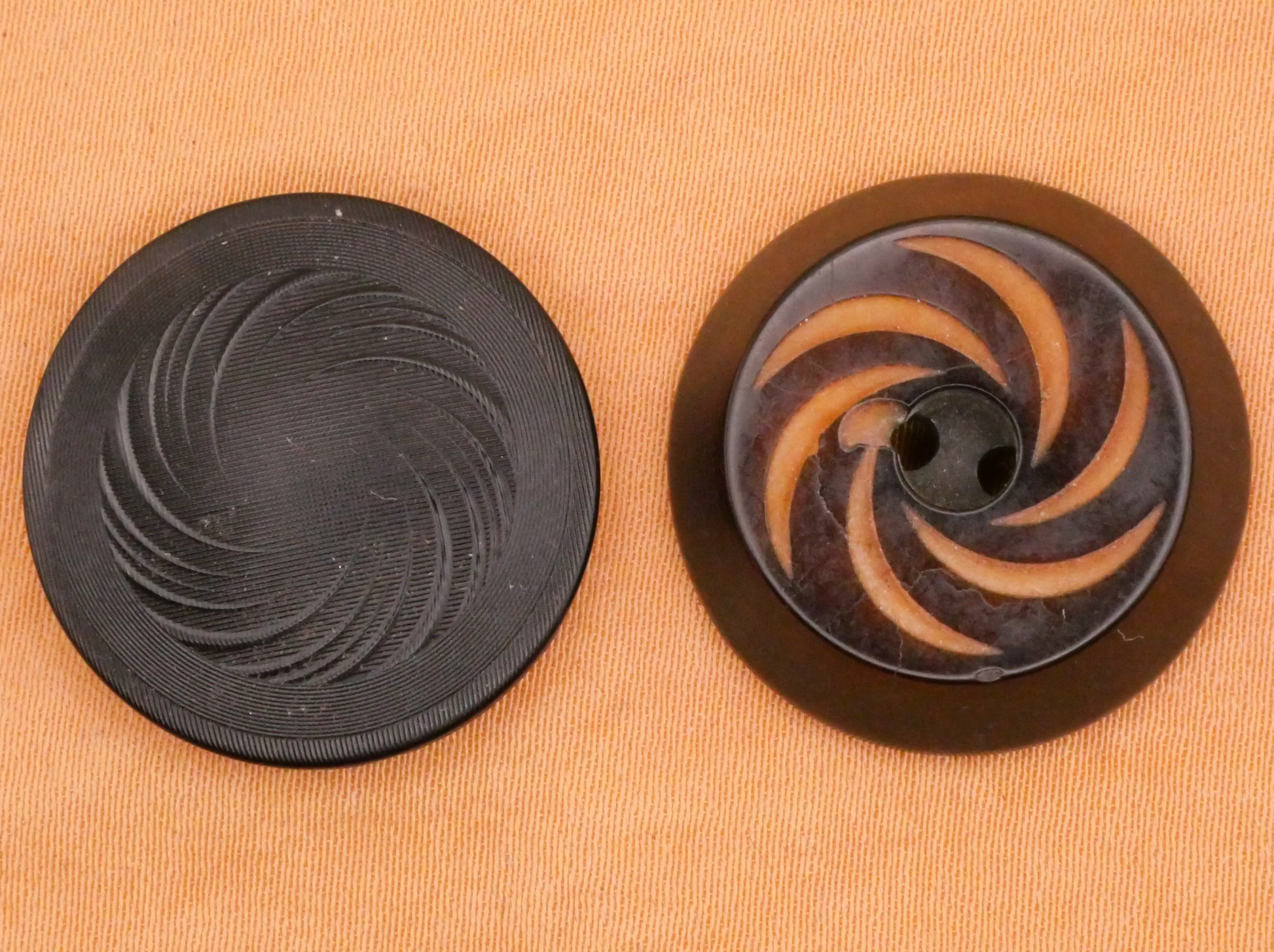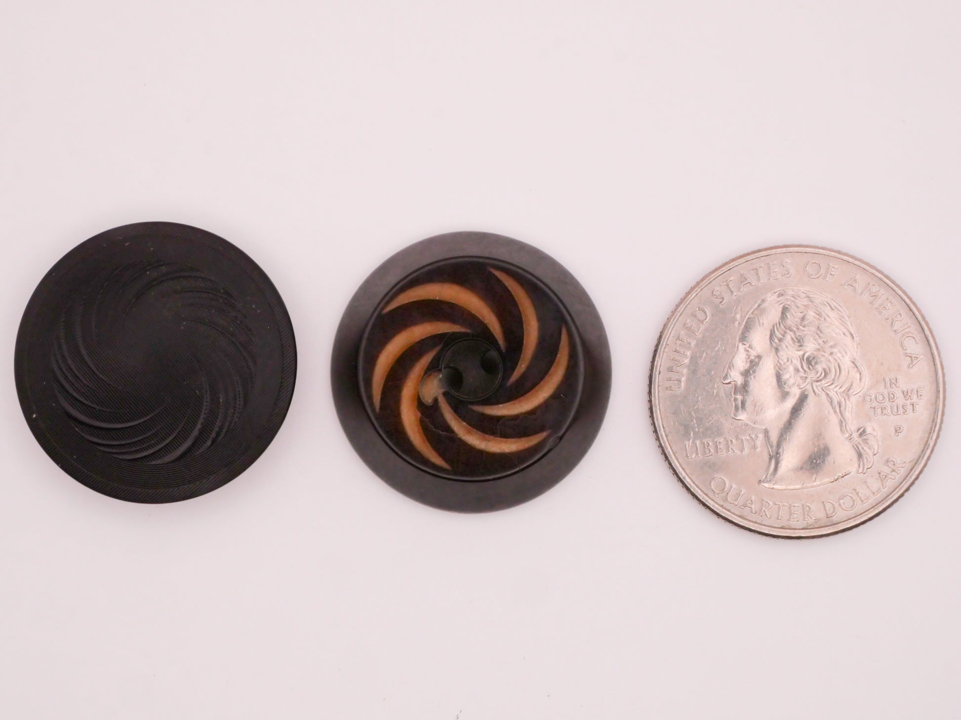 Very cool galaxy or whirlpool design vegetable ivory buttons. These measure 23mm / .91" in diameter. Choose left or right.