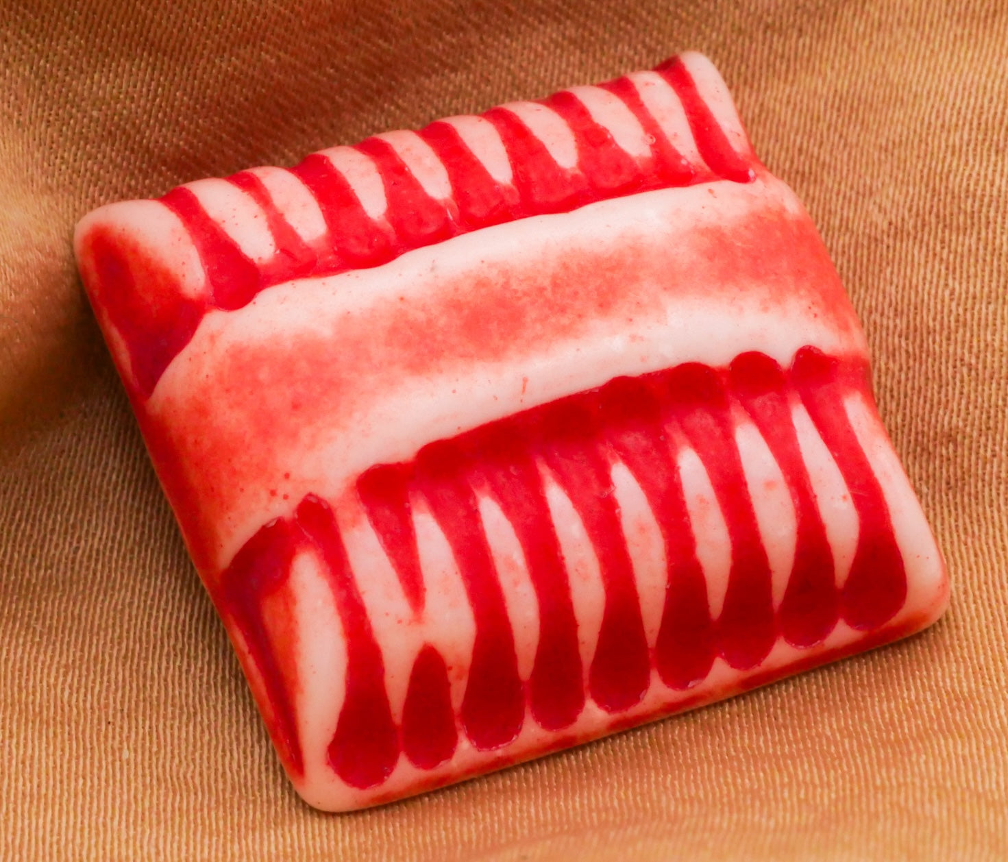 Geometric Red Stripes Ribs Buffed Look Vintage Plastic Button 25x26mm