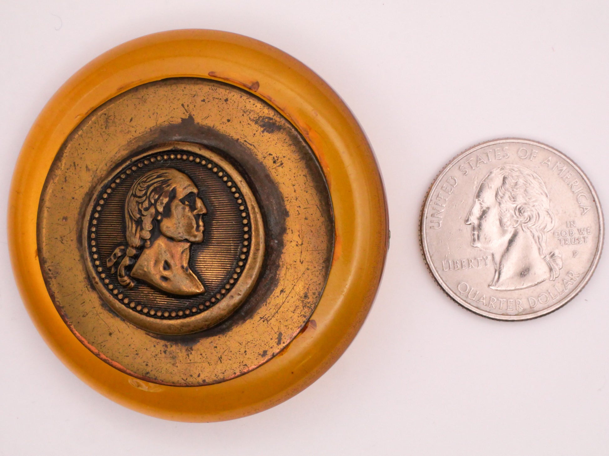George Washington President Profile Metal Apple Juice Bakelite Large Button 50mm