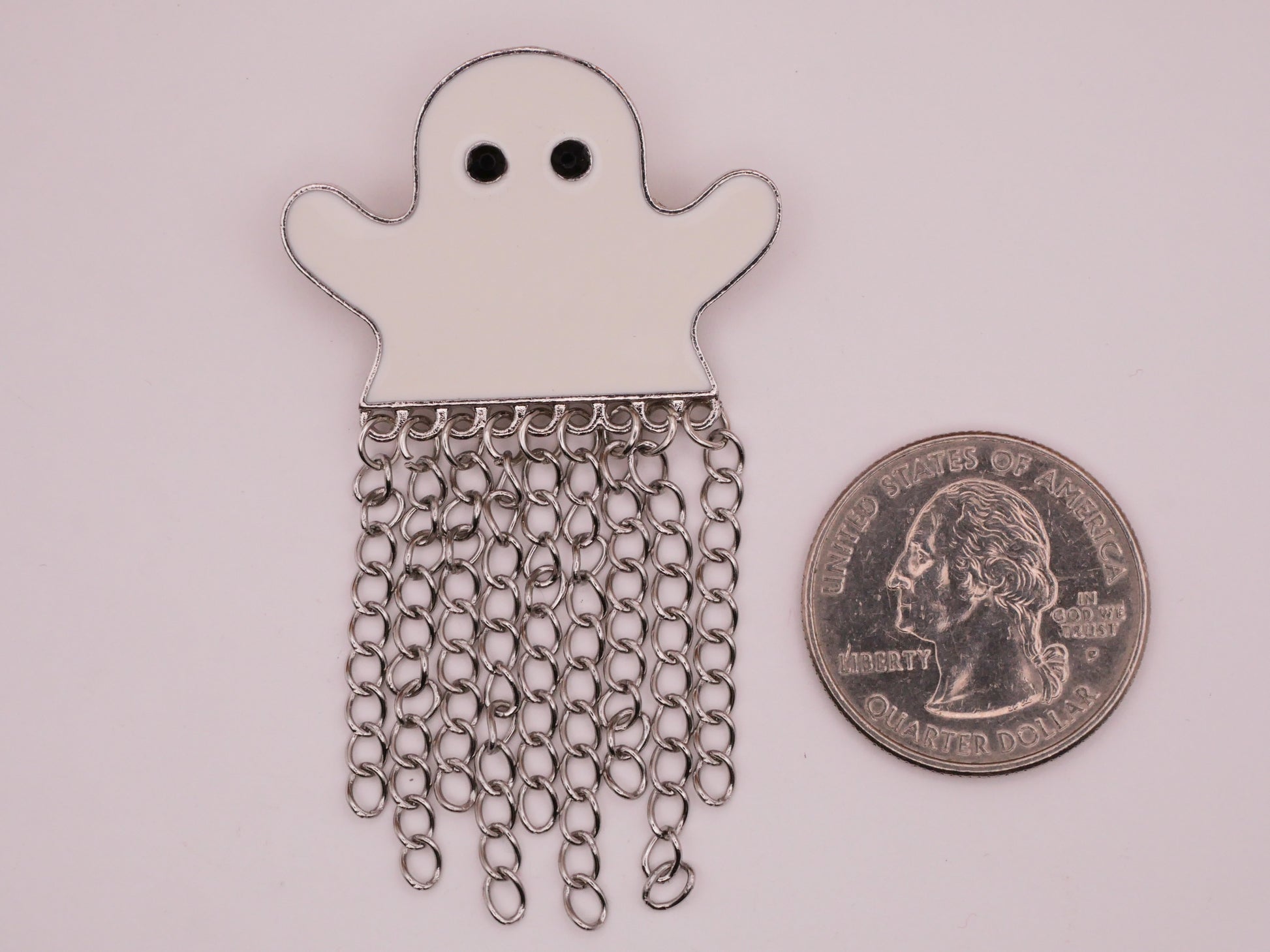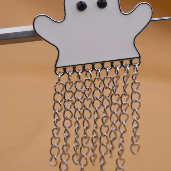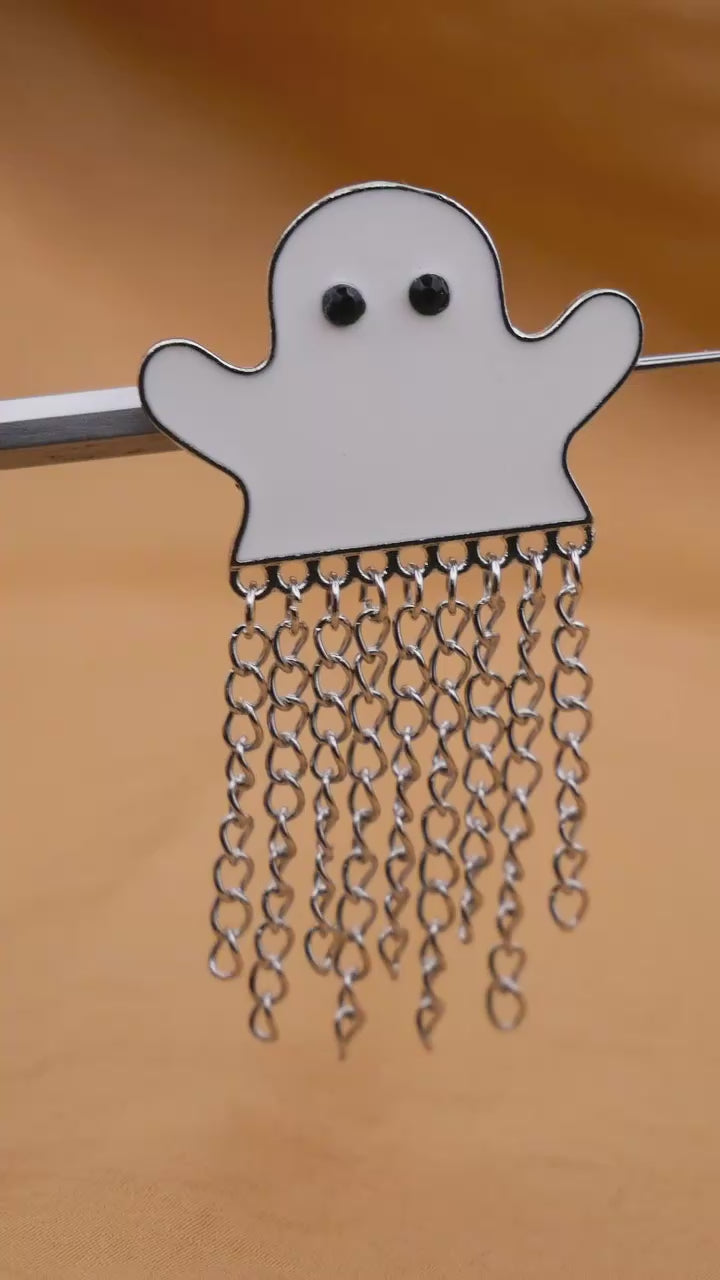 Boo! Fun large enamel ghost button with MOVEABLE dangling chains, very cool! Measures 35 x 61mm / 1.38" x 2.4".