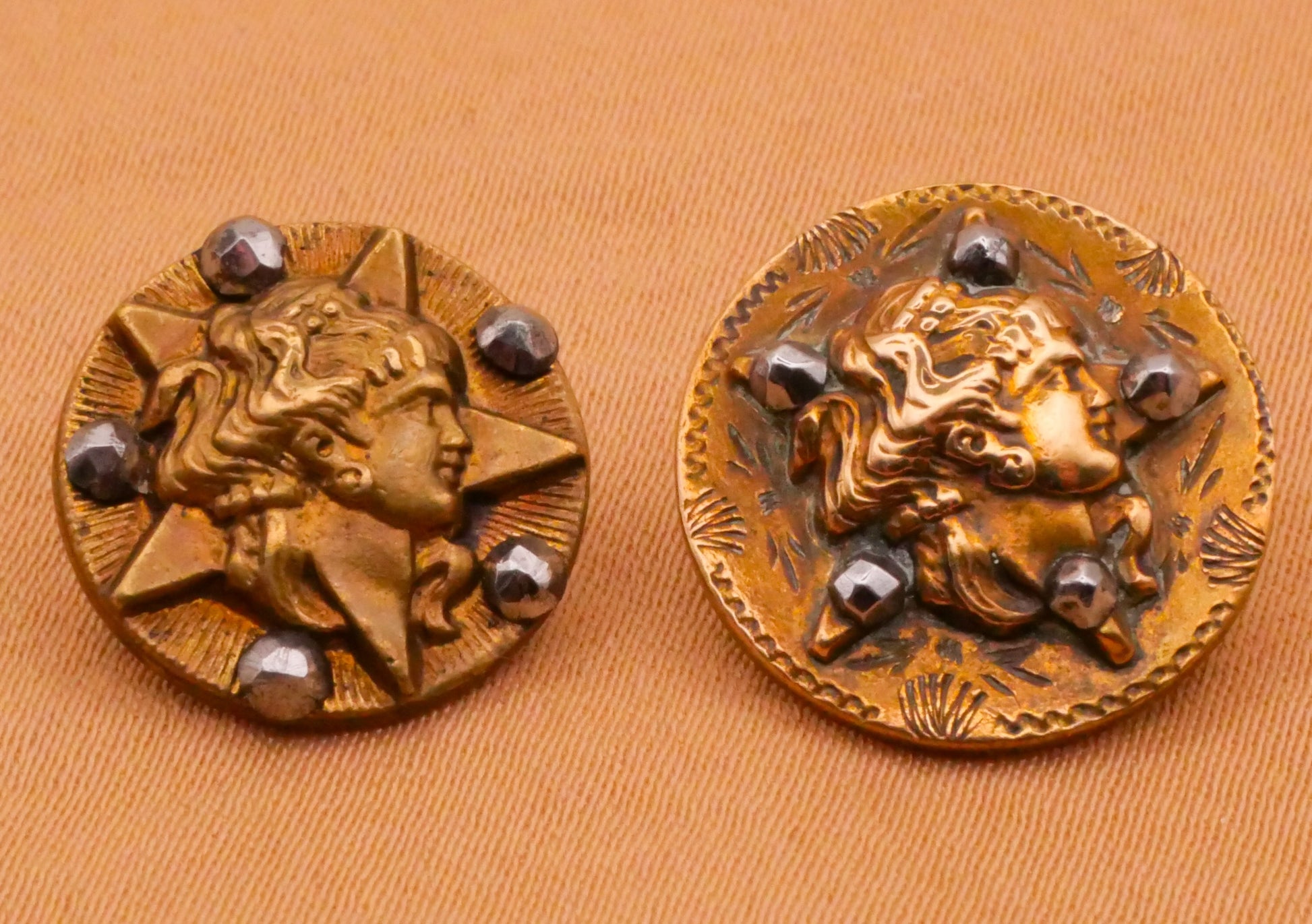 Goddess Astraea Asteria Portrait Star Steel-Cuts Brass Metal Button Various 14-16mm