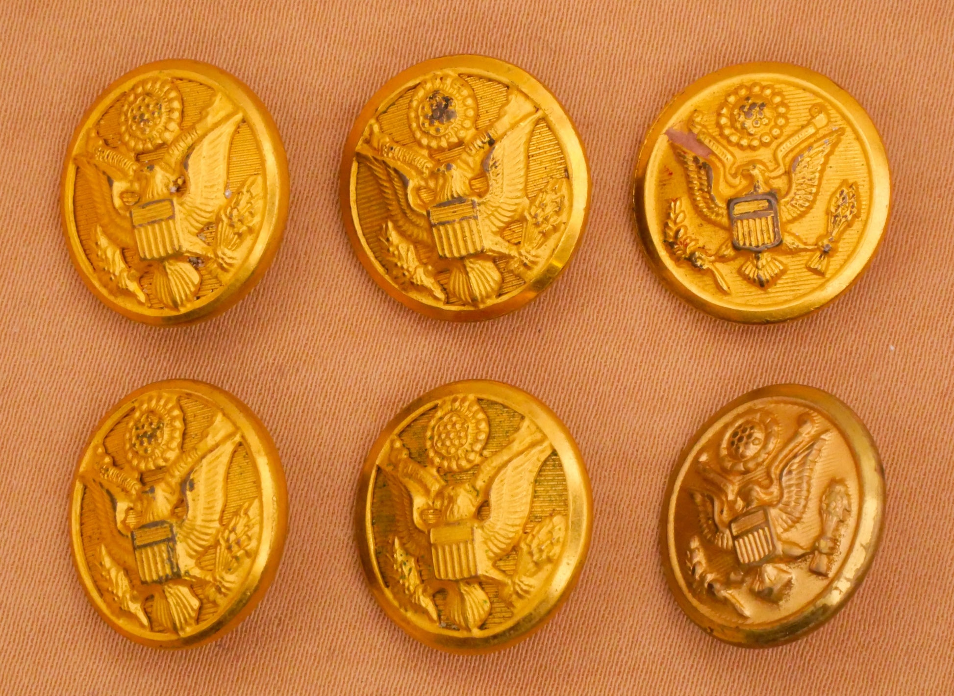 Great Seal of the United States eagle metal button. Each measures 16mm / .63" in diameter. Choose top or bottom and left, center, or right.