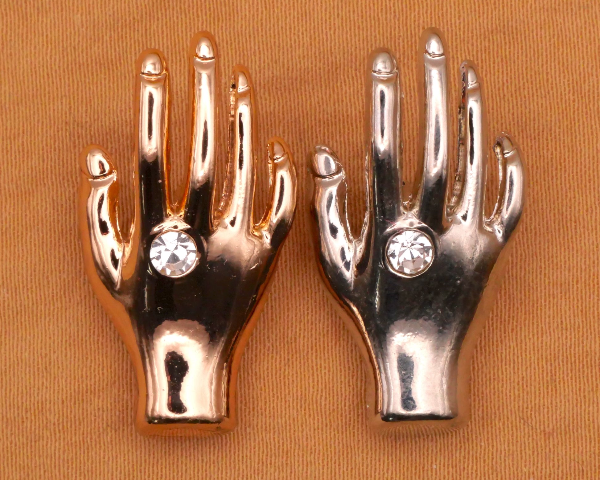Hand Diamond Ring Shiny Gold Metal Button 14x27mm