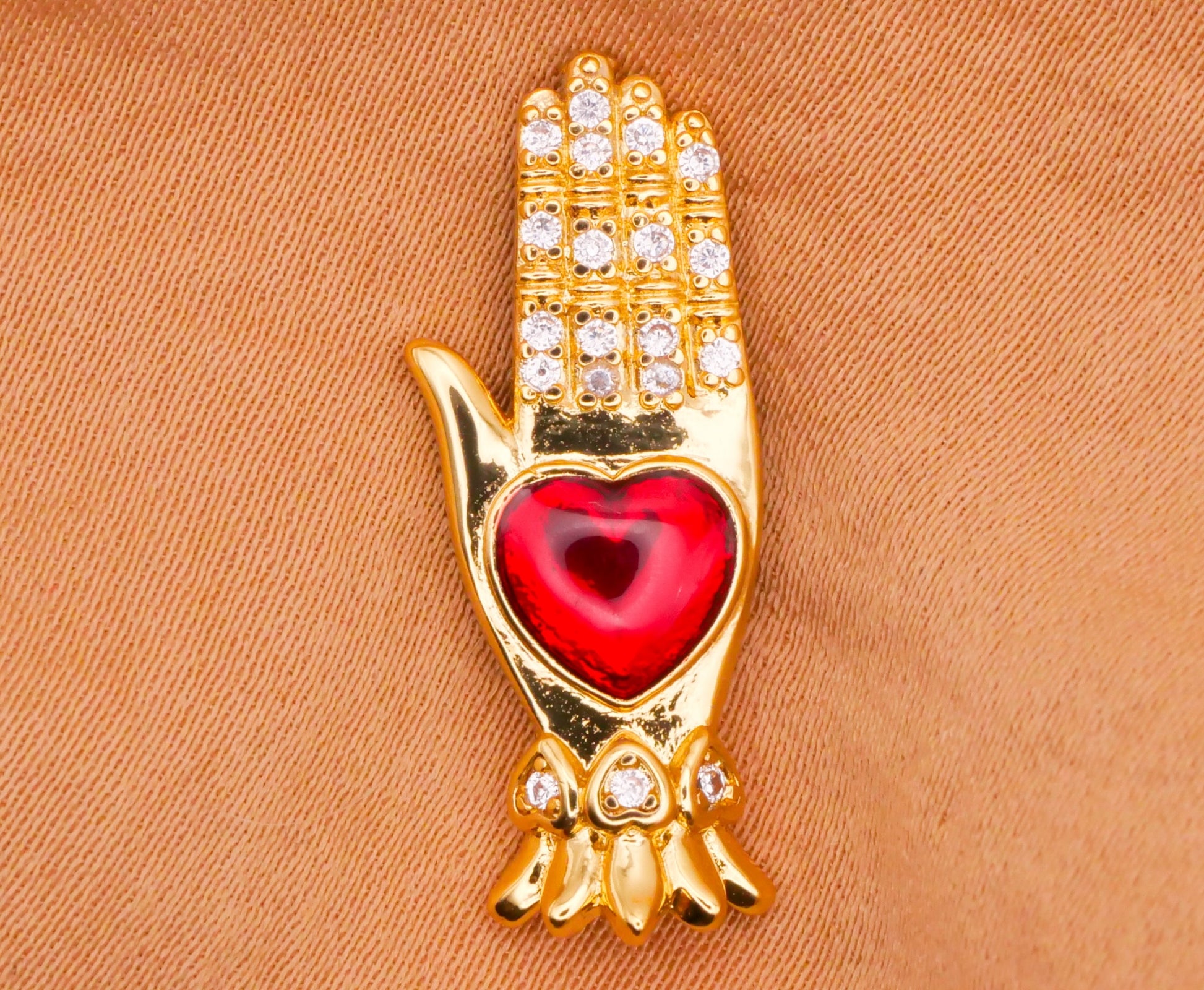 Hand Heart Rhinestone Red Enamel Gold Metal Button 10x25mm