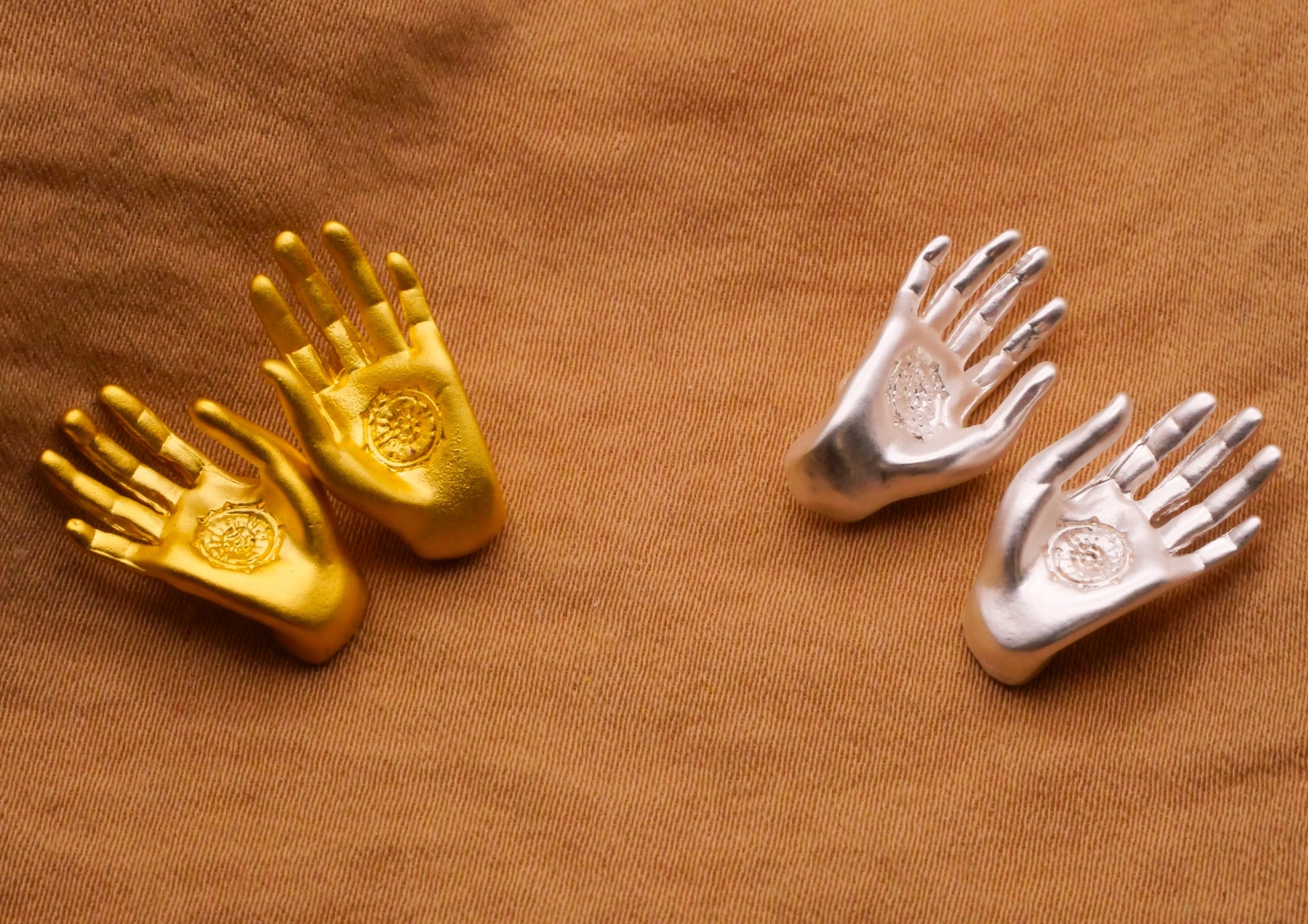 Hands Palms Gold or Silver Metal Pair of Buttons 9x19mm
