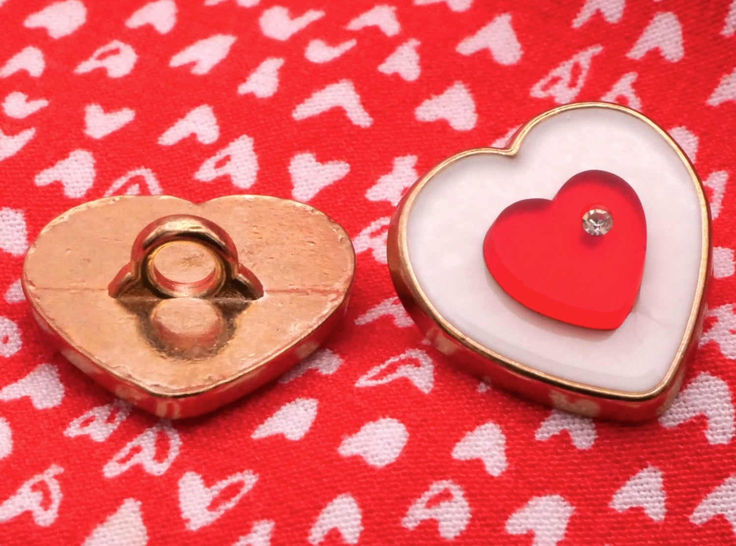 Heart Enamel Glass Rhinestone Gold Metal Button 16mm