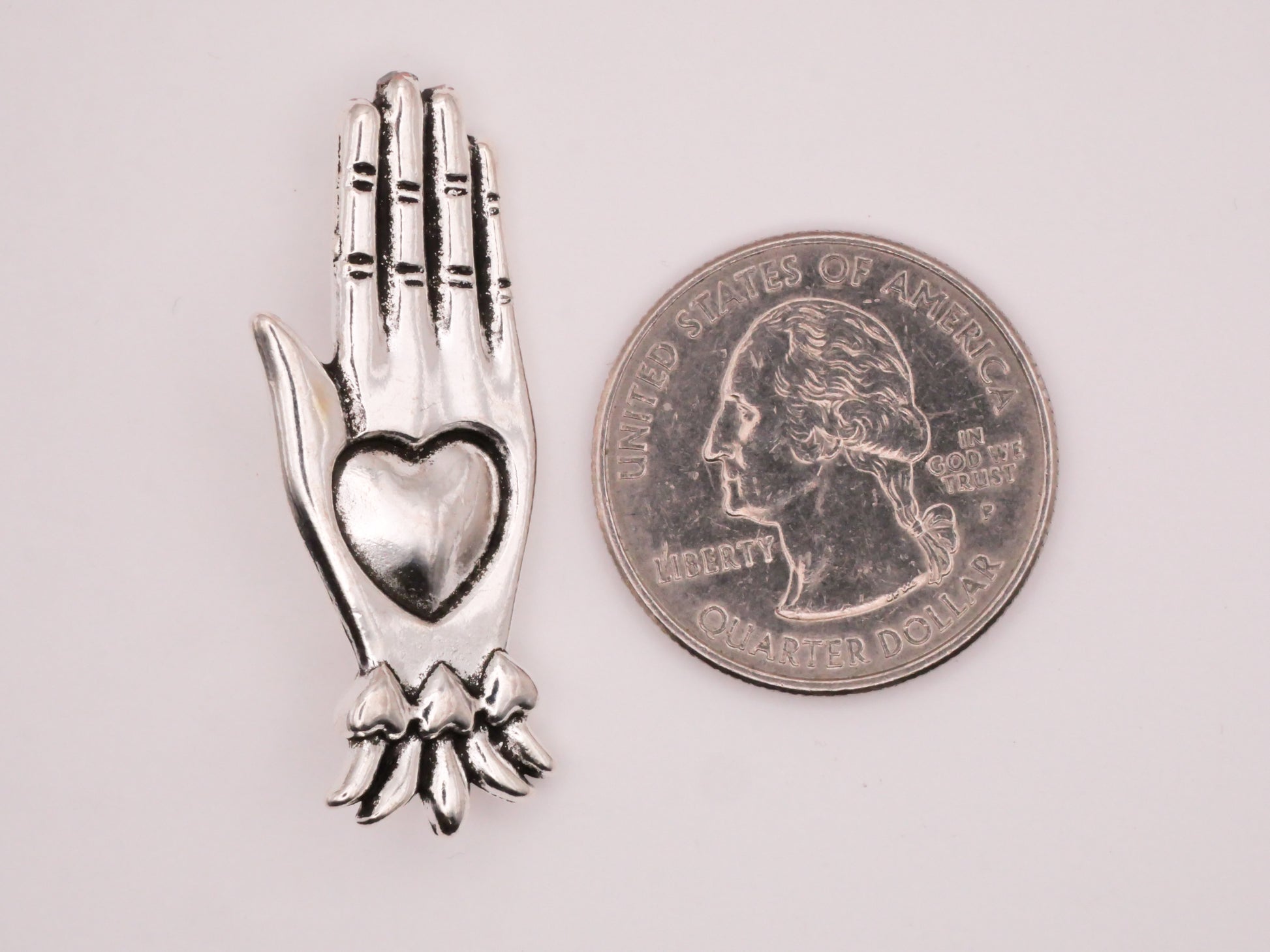 Love! Heart in hand large silver metal button, so darling! Measures 16 x 39mm / .63" x 1.54".