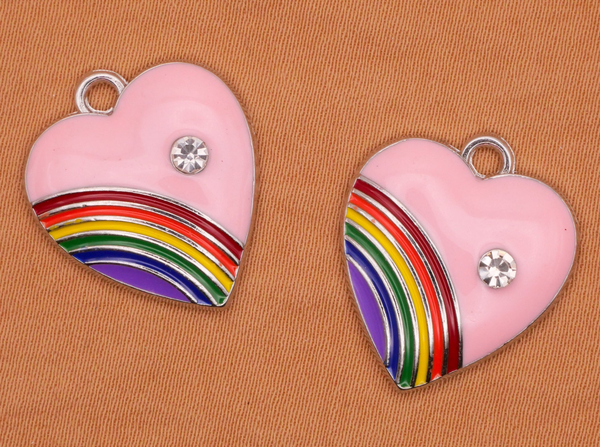 Heart Rainbow Rhinestone Enamel Metal Pair of Charms Various 18x21mm