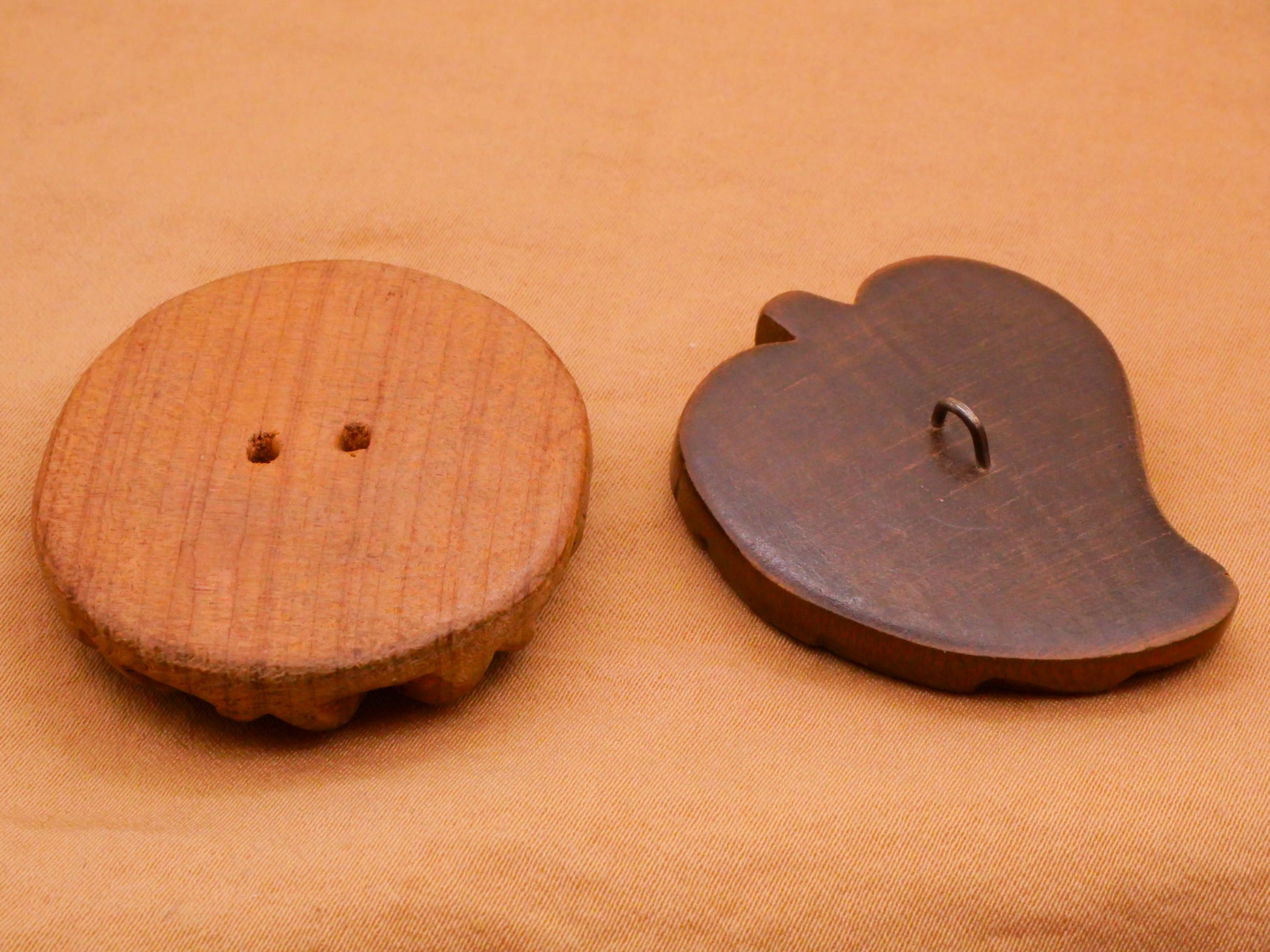Love these carved wood buttons! Choose between heart motif snowflake and textured leaf. These large buttons measure between 32-39mm / 1.26"-1.54". Choose left or right.