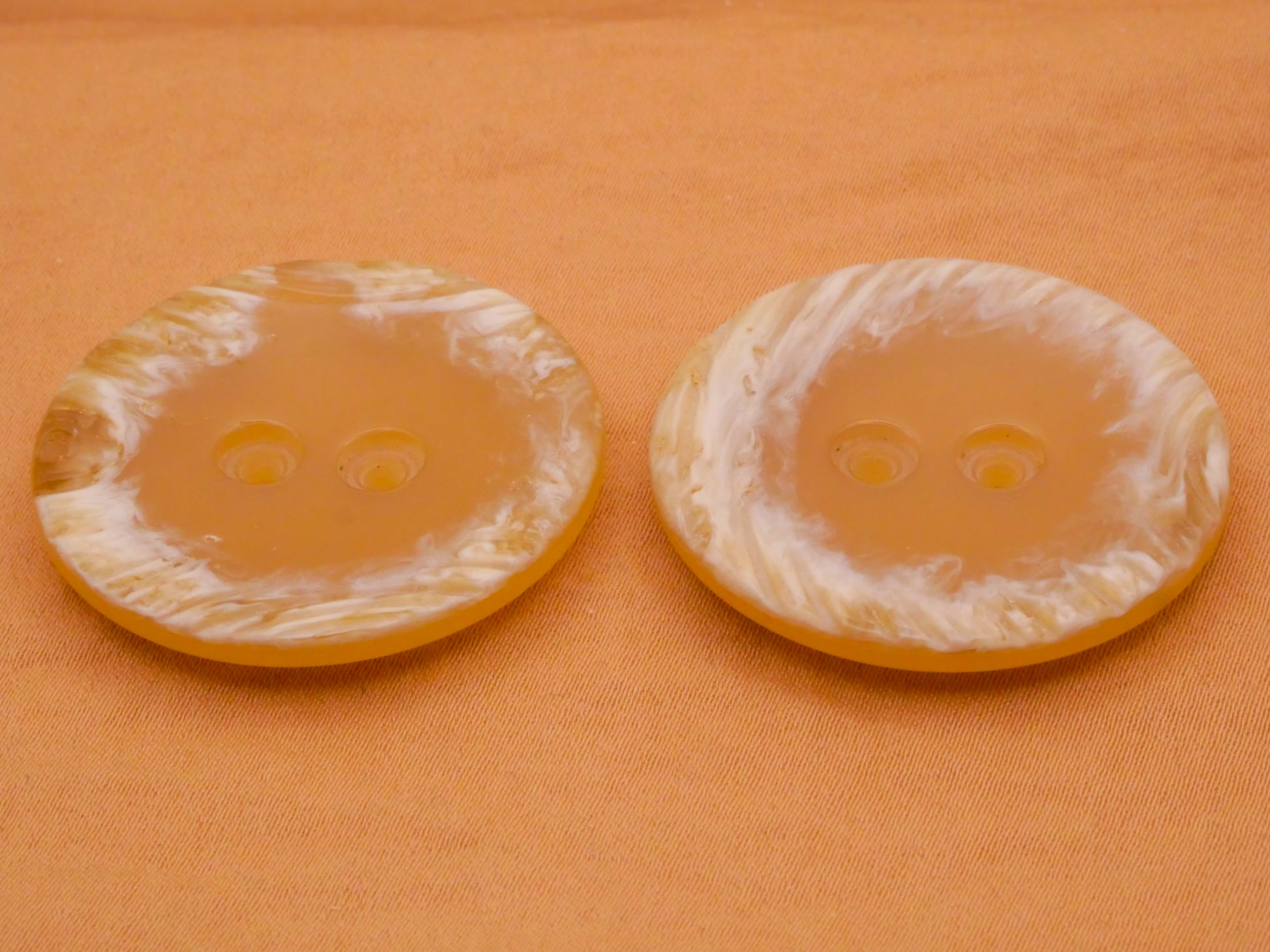 Unusual translucent plastic button that looks like horn, lovely! Each measures a large 34mm / 1.34" in diameter. Choose left or right.