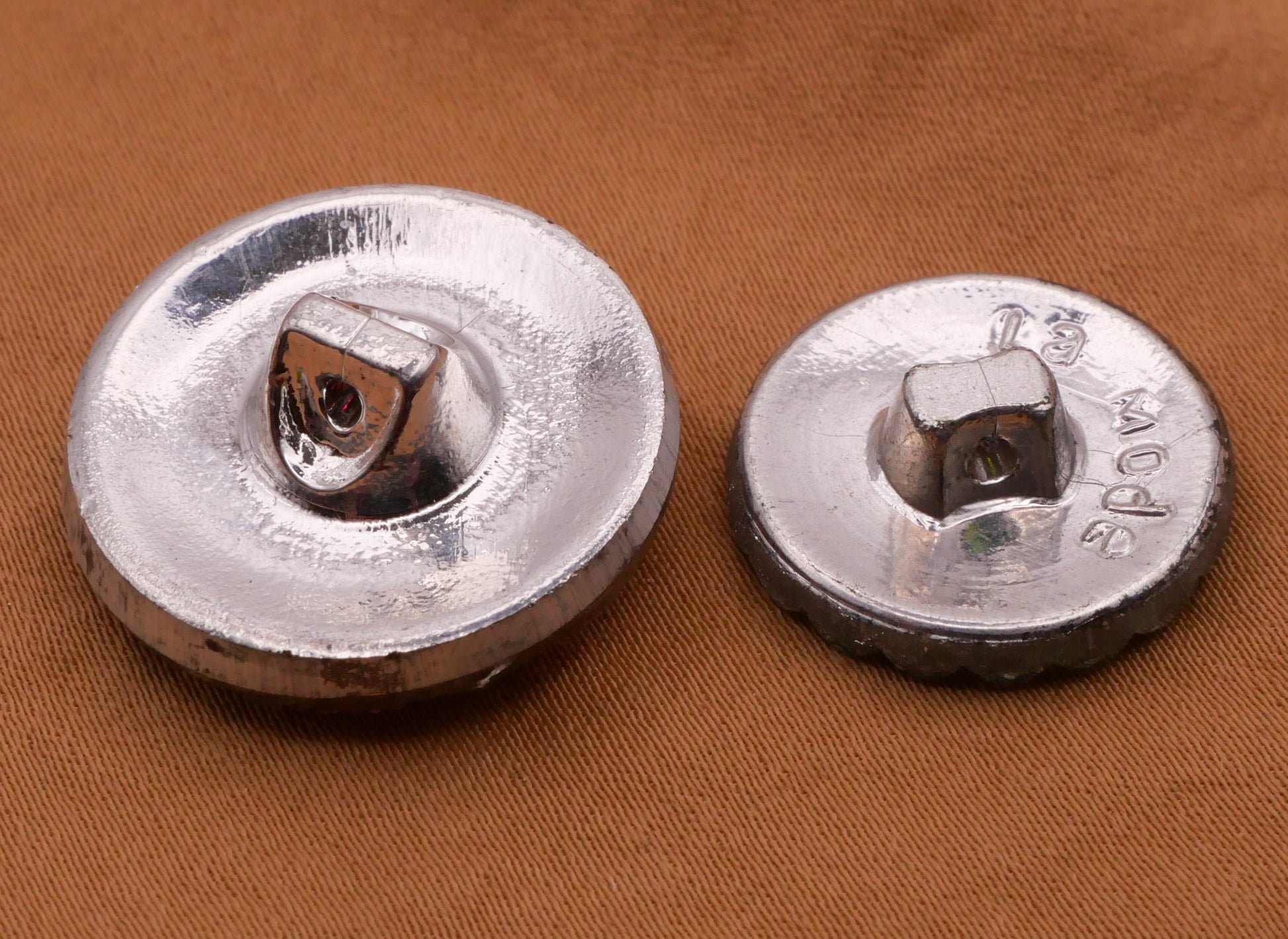 Fantastic iridescent Czech glass buttons, choose your favorite! Left has an unusual snowflake look design with reverse and surface painting. Right has a peacock feather look design. These measure between 18-22mm / .71" x .87". Choose left or right.