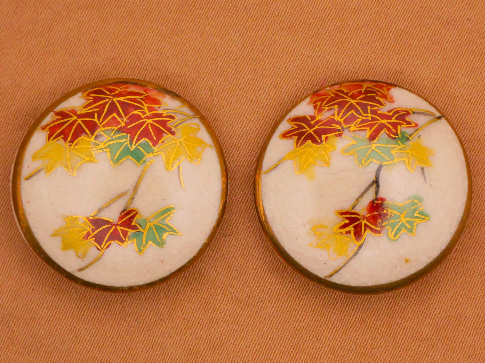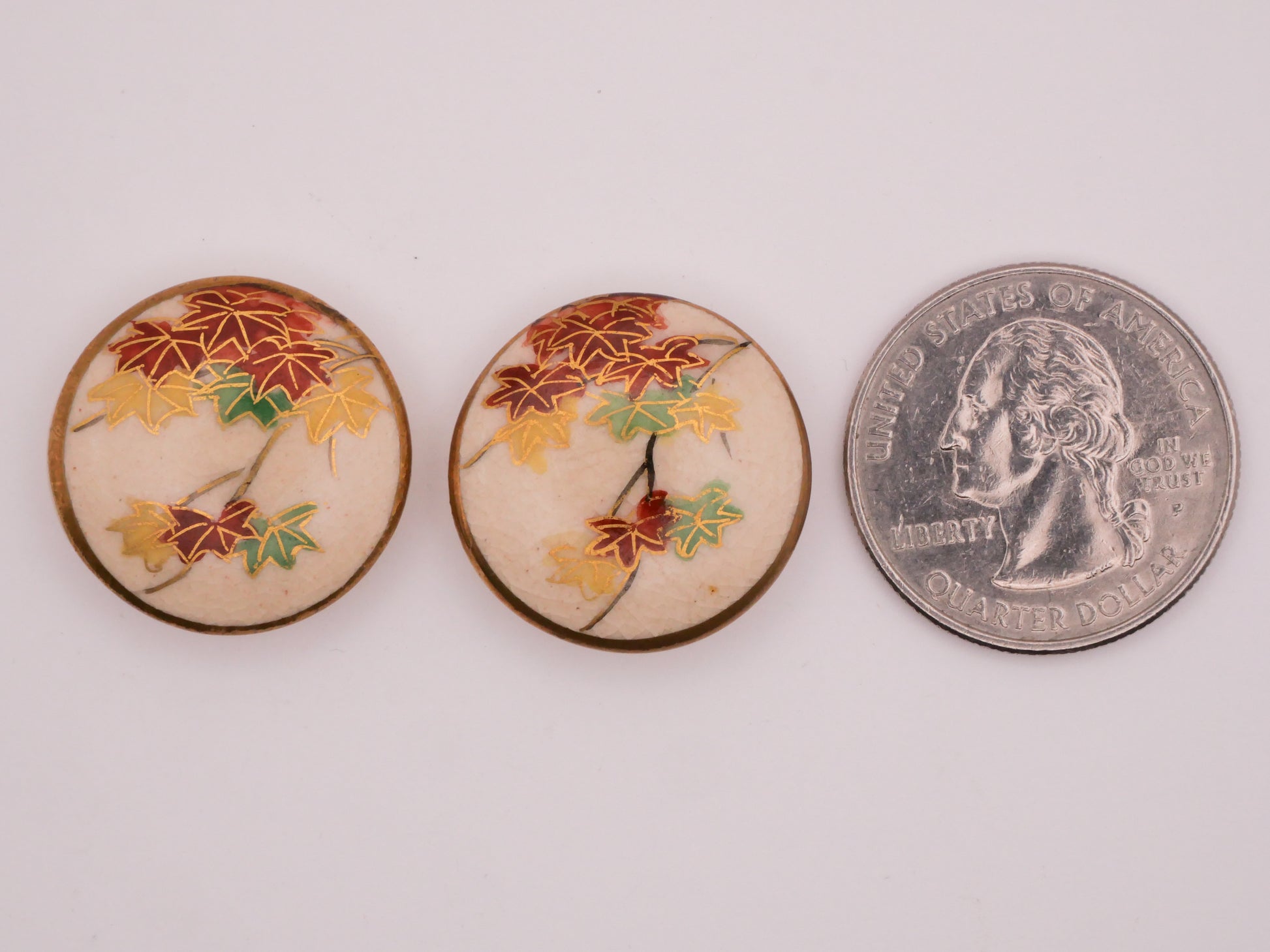 Leaf Leaves Satsuma Hand-Painted Antique Button Various 22mm