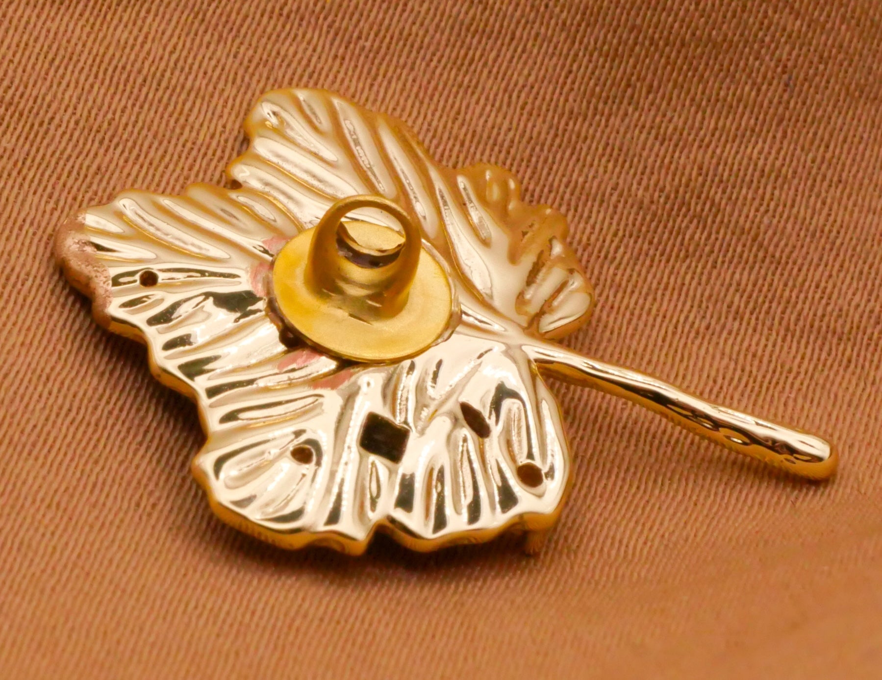 Leaf Maple Enamel Rhinestone Metal Button 20x27mm