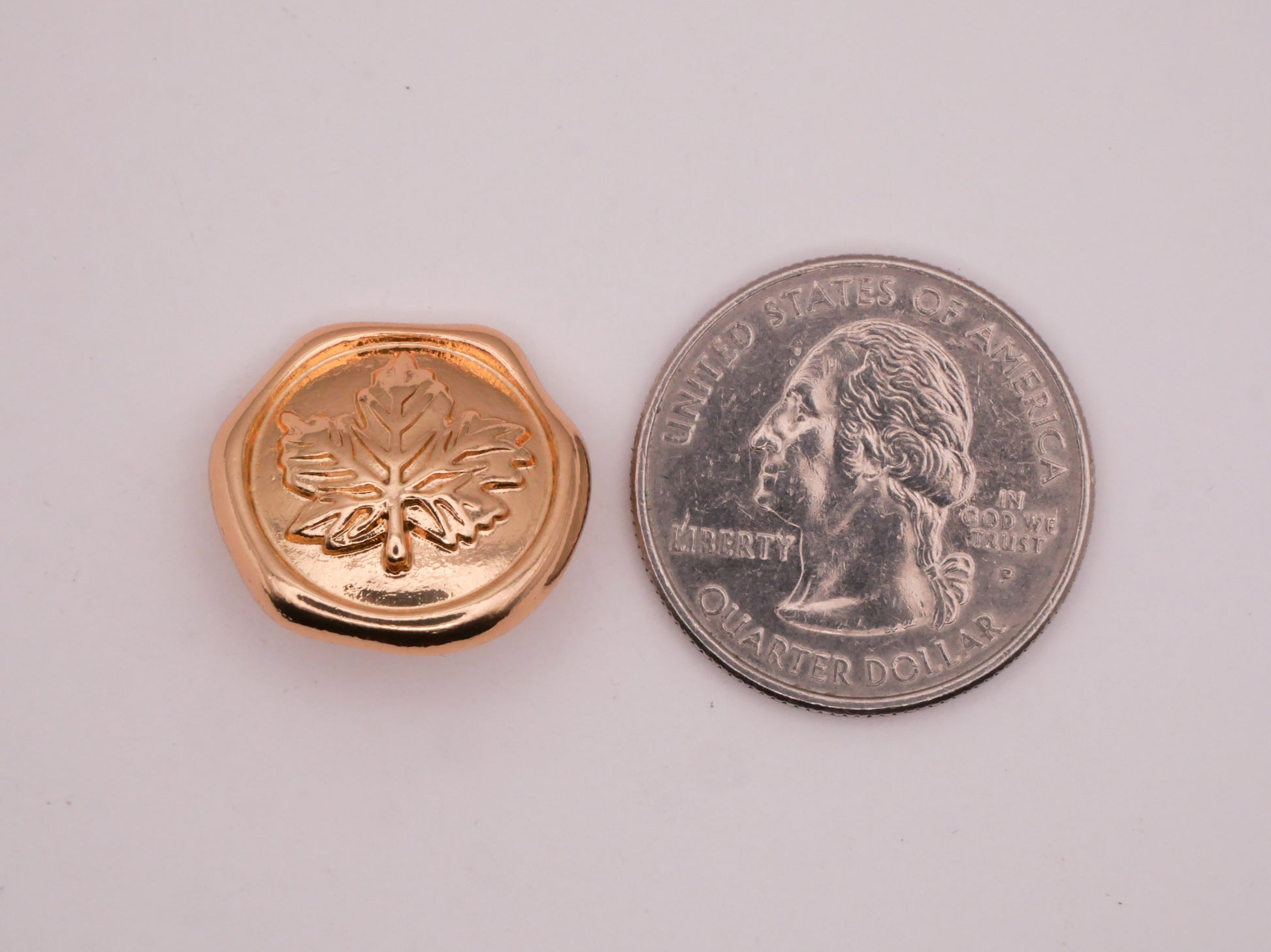 Leaf Wax Seal Look Shiny Gold Metal Button 19x20mm