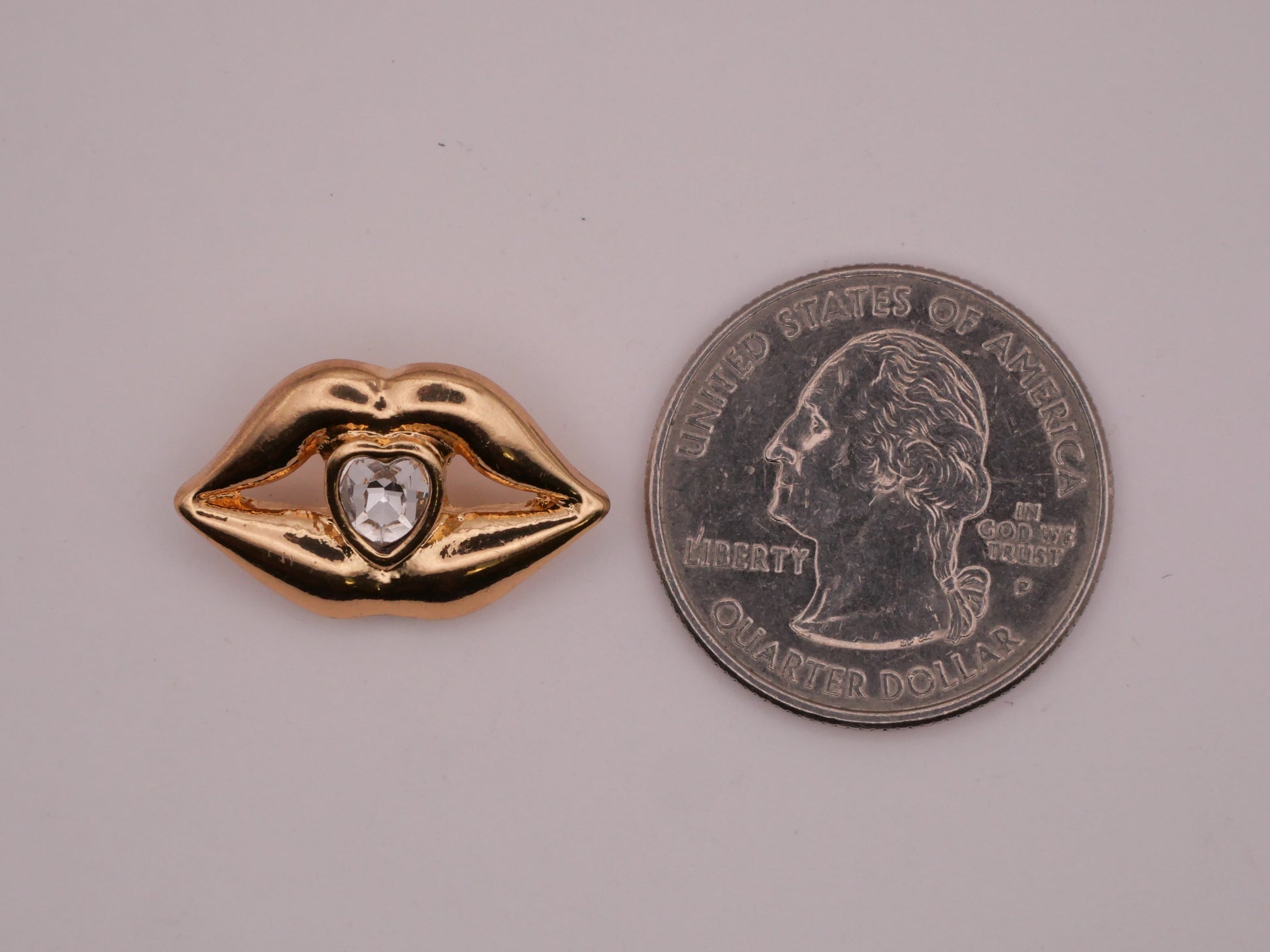 Fantastic shiny gold lips with rhinestone heart in the center. Metal button measures 14 x 22mm / .55" x .87".
