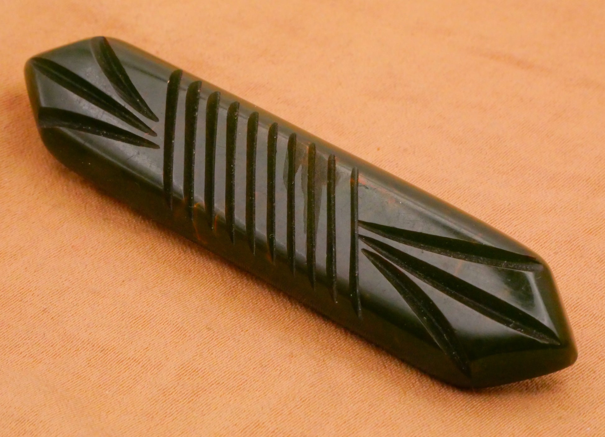 Marbled Green Carved Bakelite Vintage Brooch Pin 14x65mm