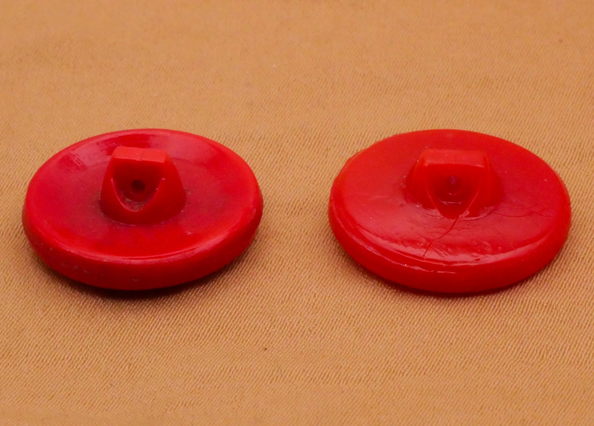 Nautical themed vintage red and silver glass buttons. Anchor has surface hairline (see photo). Each measures 18mm / .71" in diameter. Choose sailboat or anchor.
