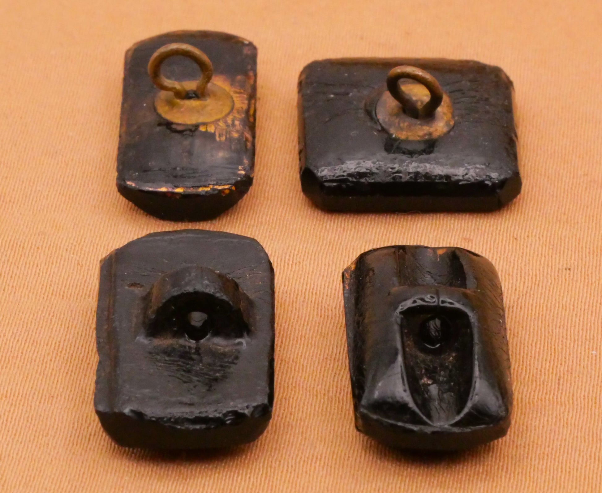Fabulous paisley motif design antique glass buttons with gold accent, some with color. These measure between 10-21mm / .39"-.83". Choose top or bottom and left or right.
