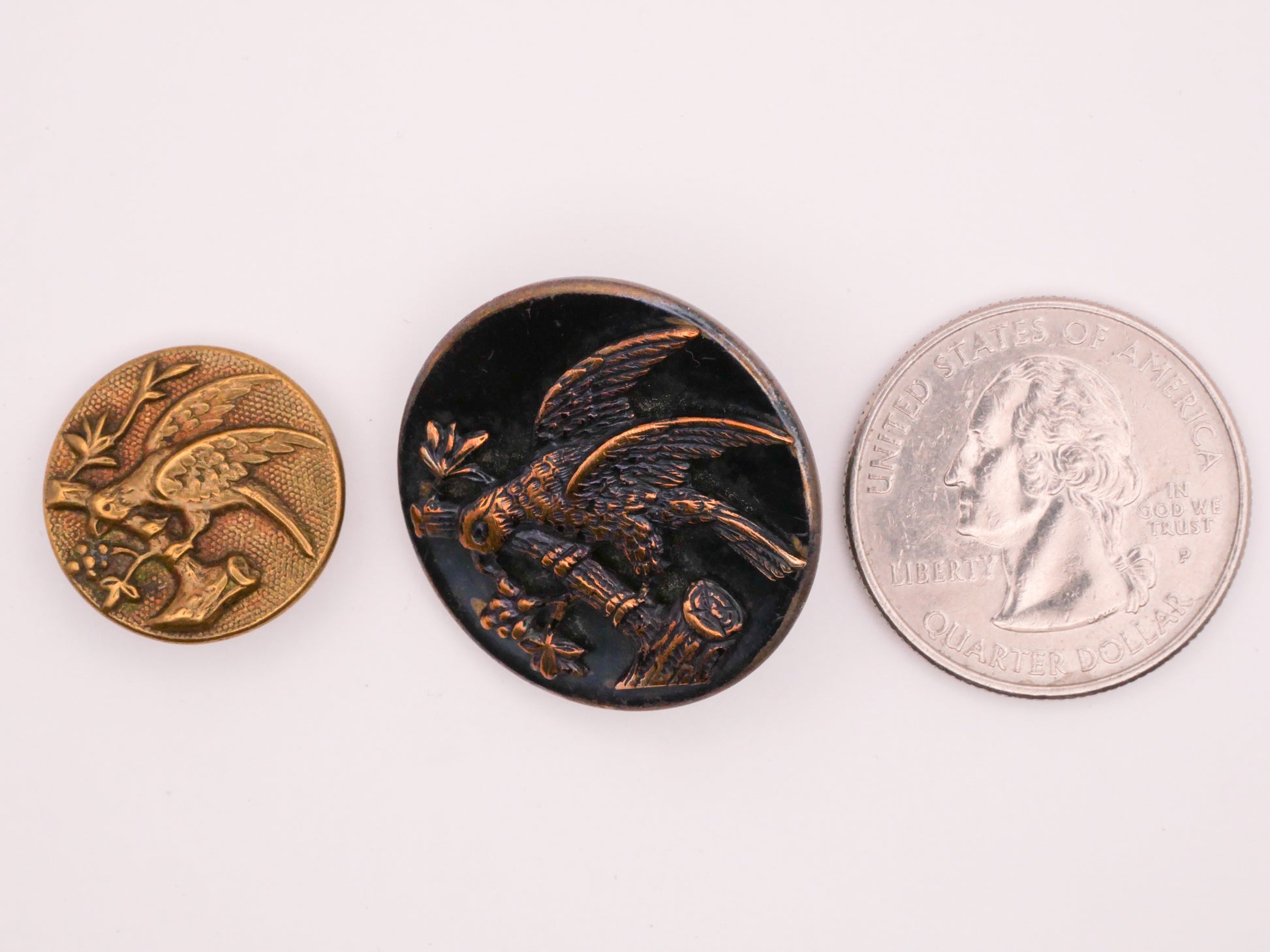 Fantastic parrot bird design Victorian metal buttons, choose your favorite! Right has blue tinted background, beautiful! These measure between 18-26mm / .71"-1.02". Choose left or right.