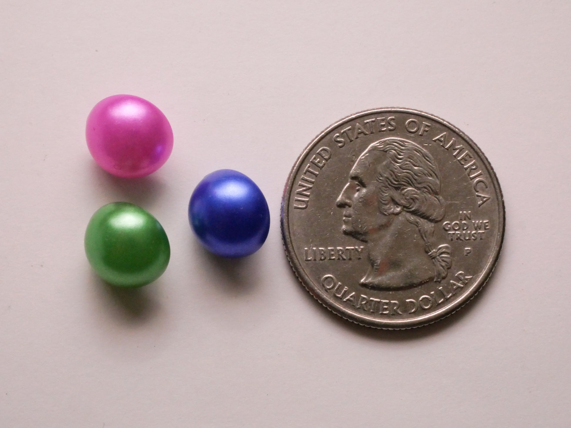 Fun and colorful pearl look plastic shank back buttons. Sold in assorted set of thirty. Each button measures 10mm / .39" in diameter.