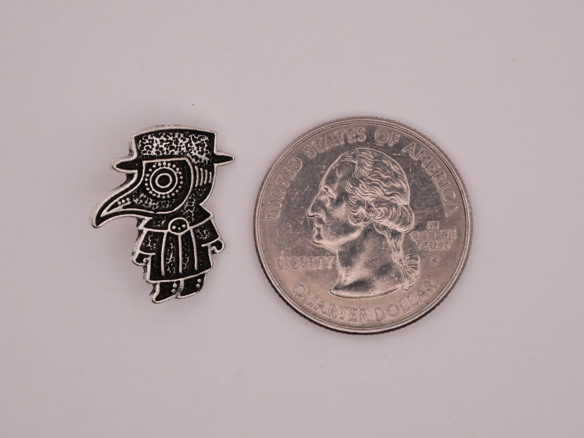 Wow! Cool antiqued silver metal button depicting a plague doctor! Measures 18 x 20mm / .71" x .79".