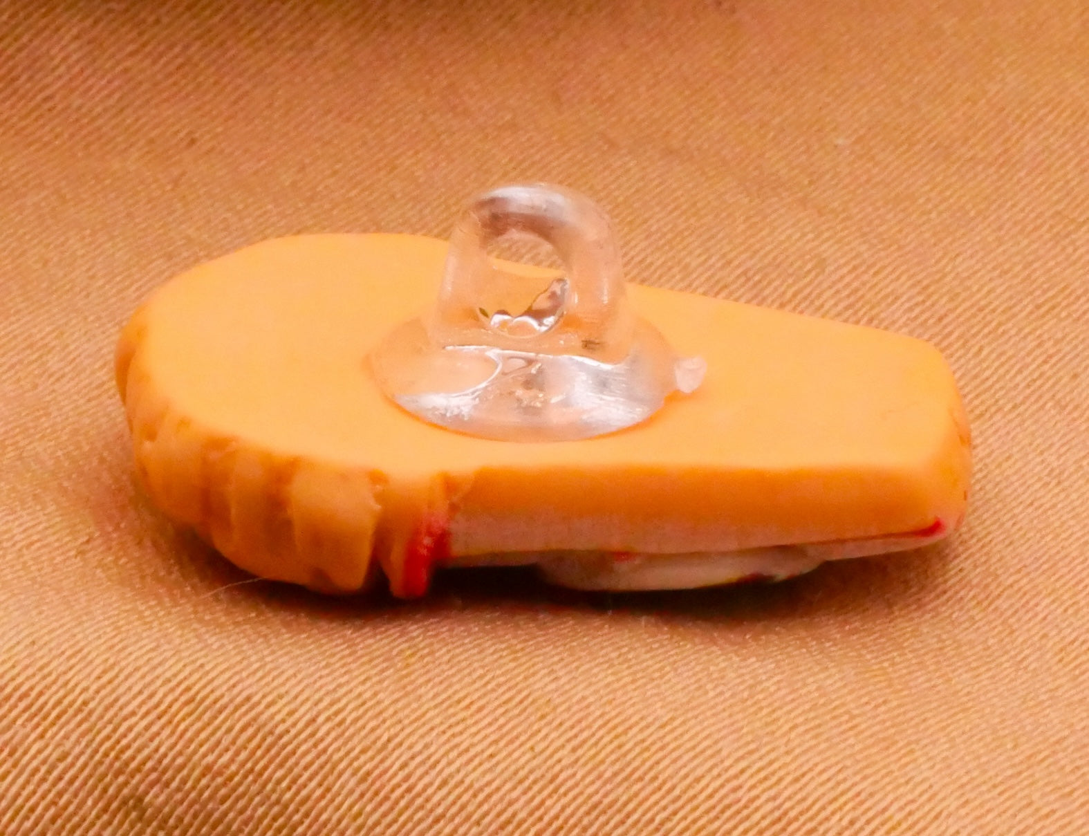 Adorable movie theater popcorn container. Cool verbal button in plastic. Measures 13 x 22mm / .51" x .87".
