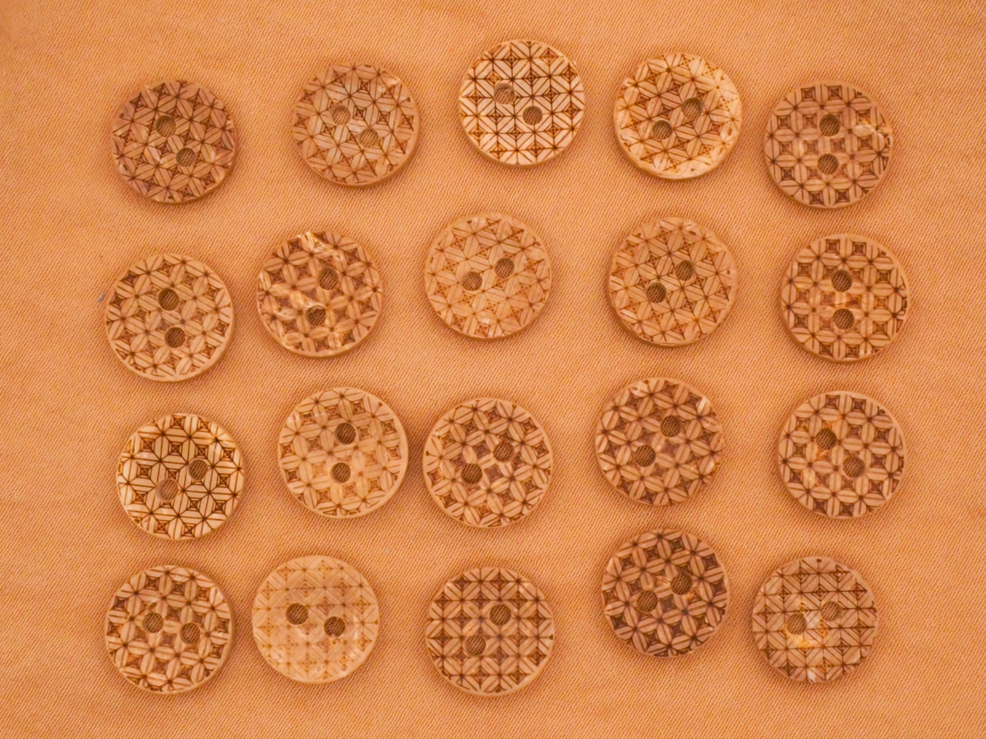 Quilted Diamond Laser Cut Coconut Shell Set of Twenty Buttons 11mm