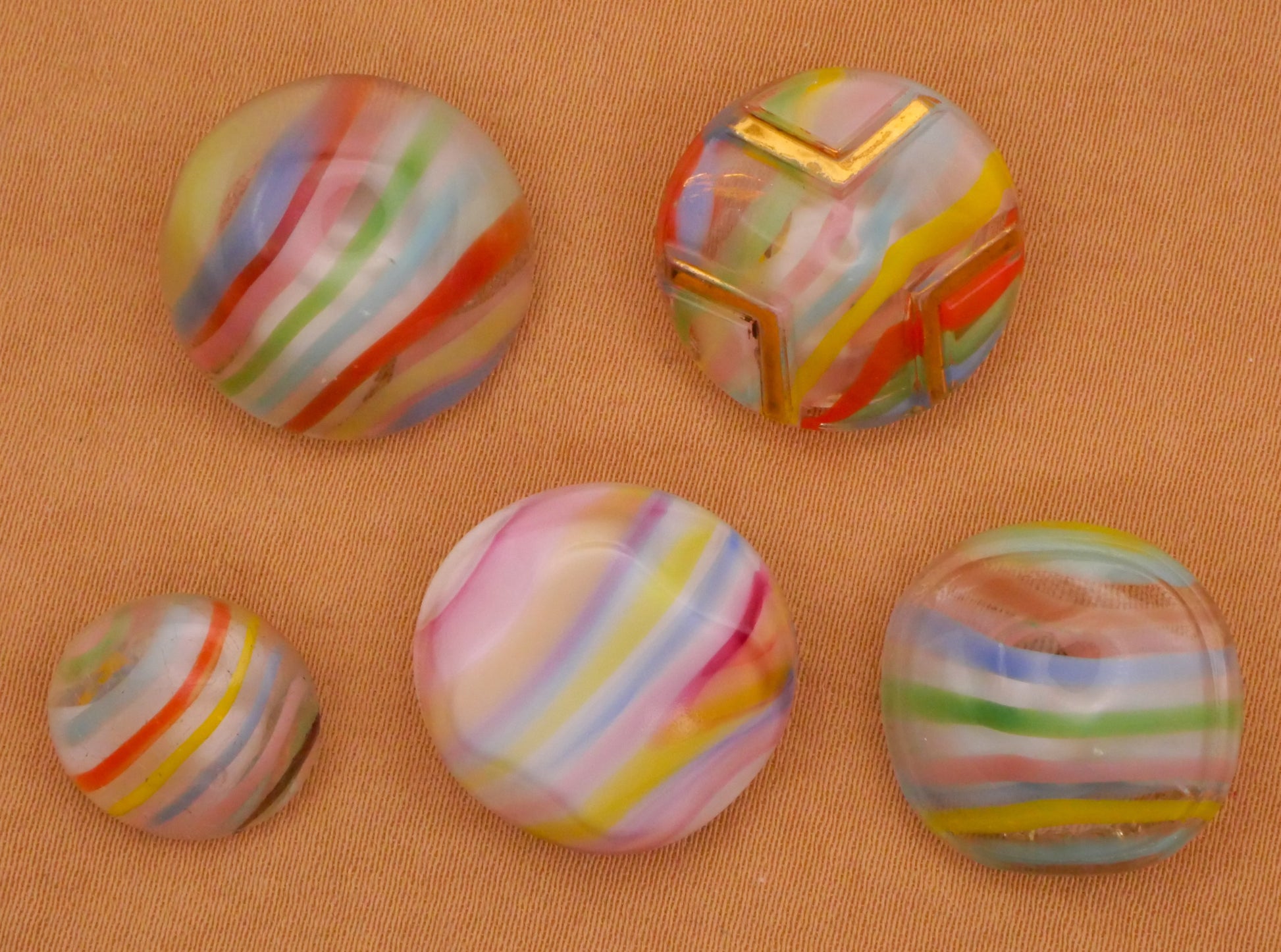 Rainbow Stripe Dig Dug Design in Glass Vintage Button Various 13-18mm