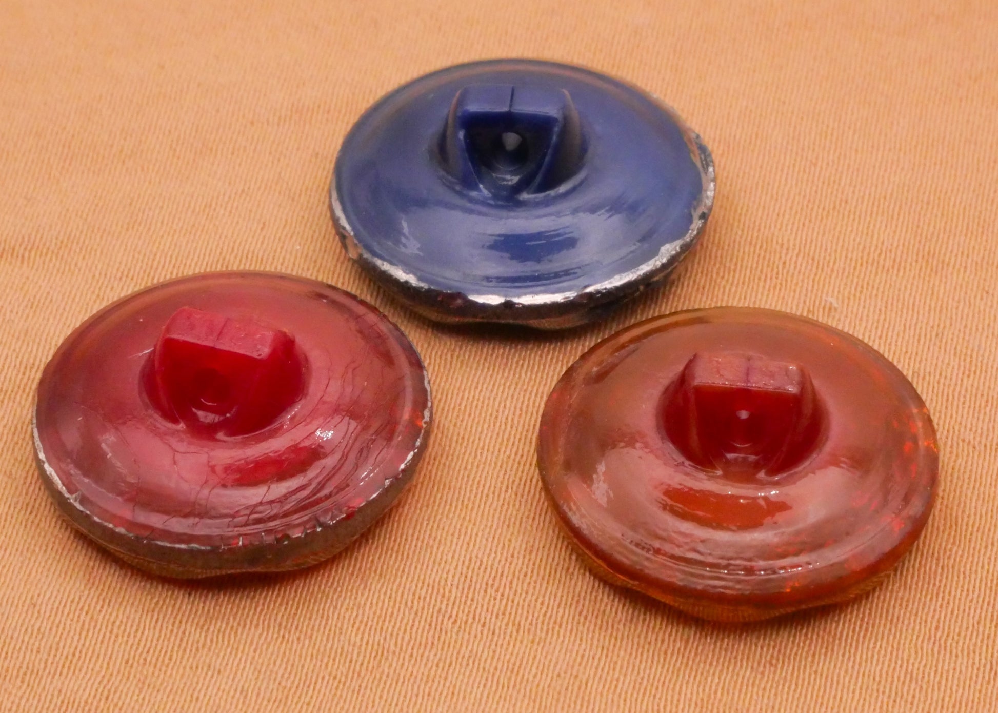 Red or Blue Luster Moonglow Vintage Glass Button Various 18mm