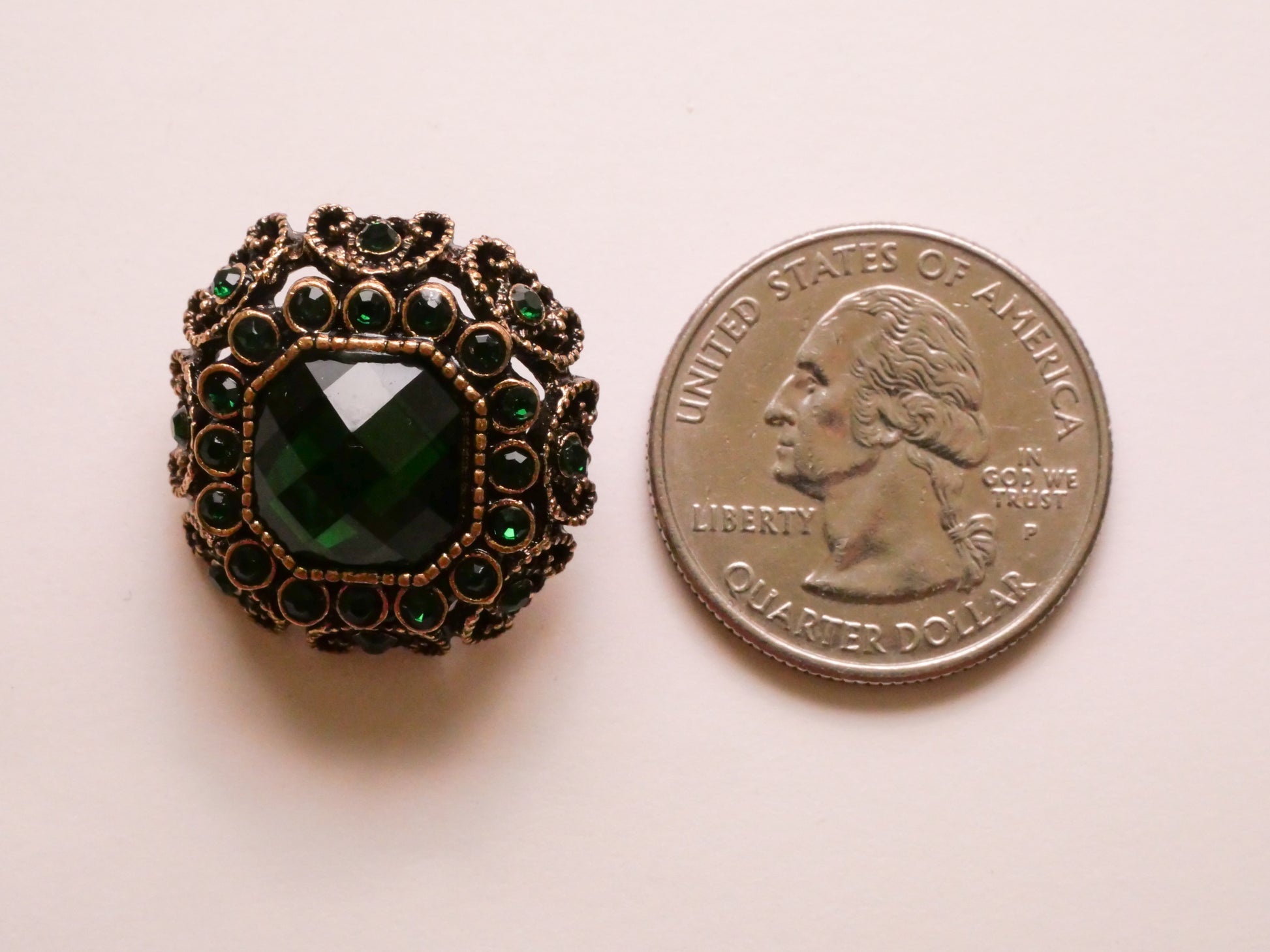 Rhinestone Green Bronze Old World Look Metal Button 22mm
