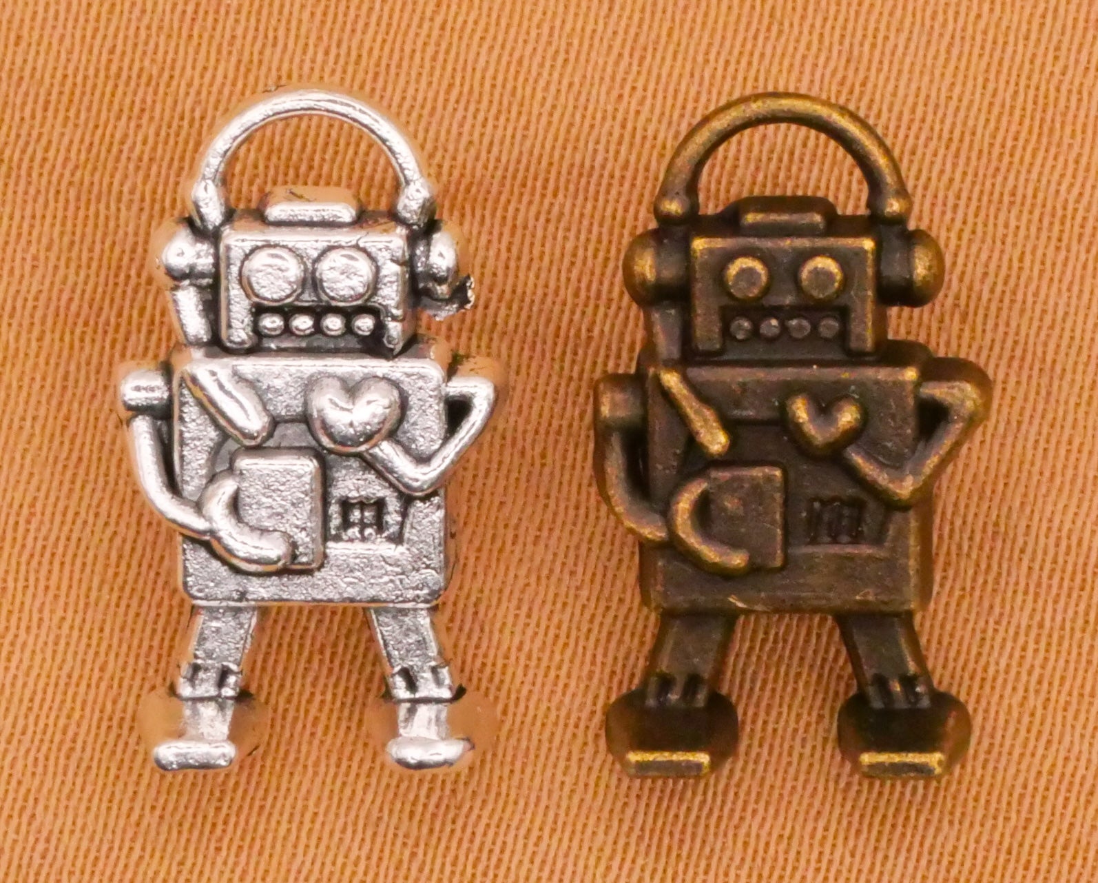 Robot Toy Heart Silver or Bronze Metal Button 10x17mm