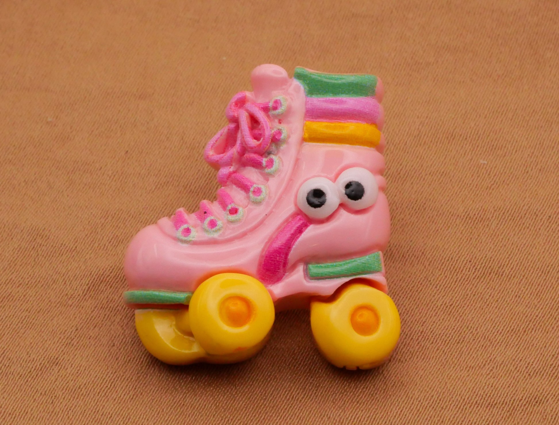 Roller Skate Pink Stripes Eyes Plastic Button 24x26mm