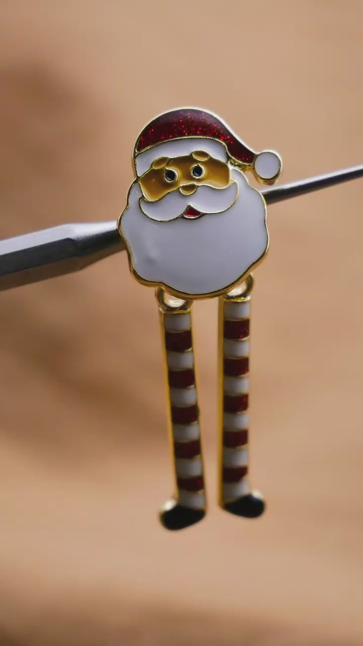 Darling Santa enamel button with moveable dangling legs. Love him! Measures 17 x 44mm / .67" x 1.73".
