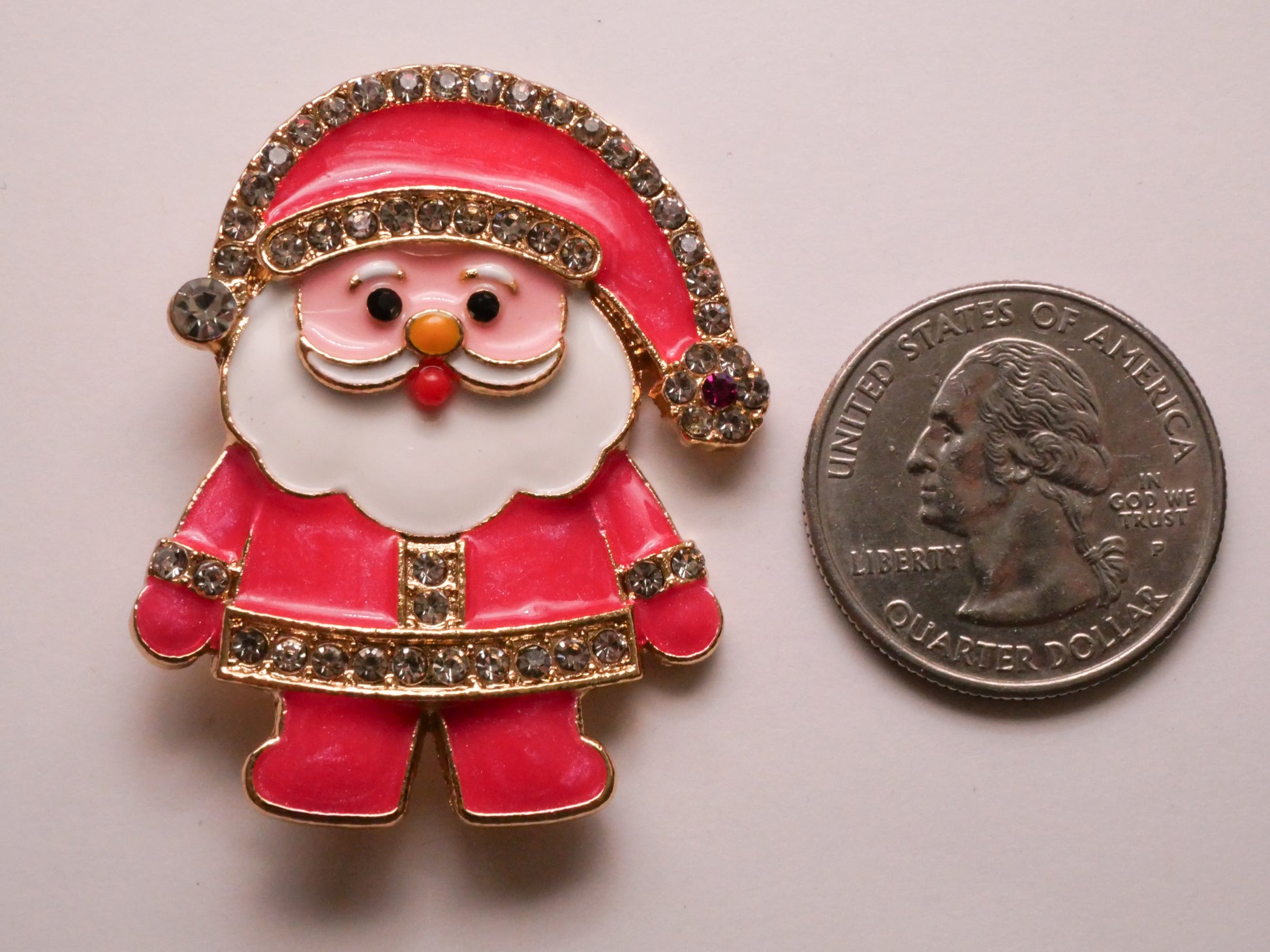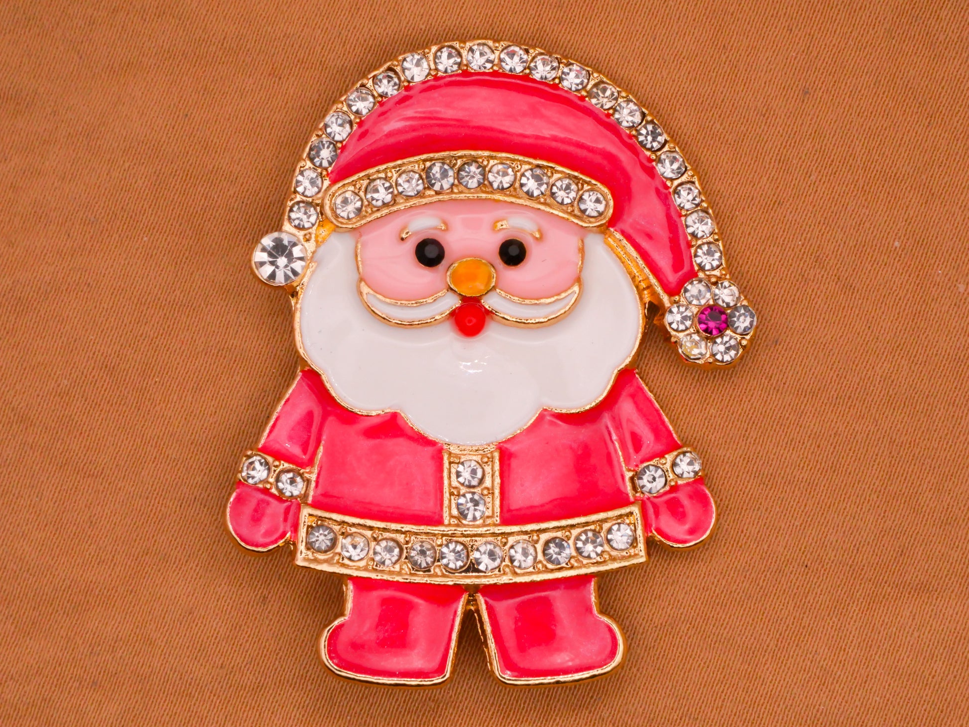 Ho ho ho! Pink rhinestone enamel metal Santa! Large button measures 44 x 46mm / 1.73" x 1.81".