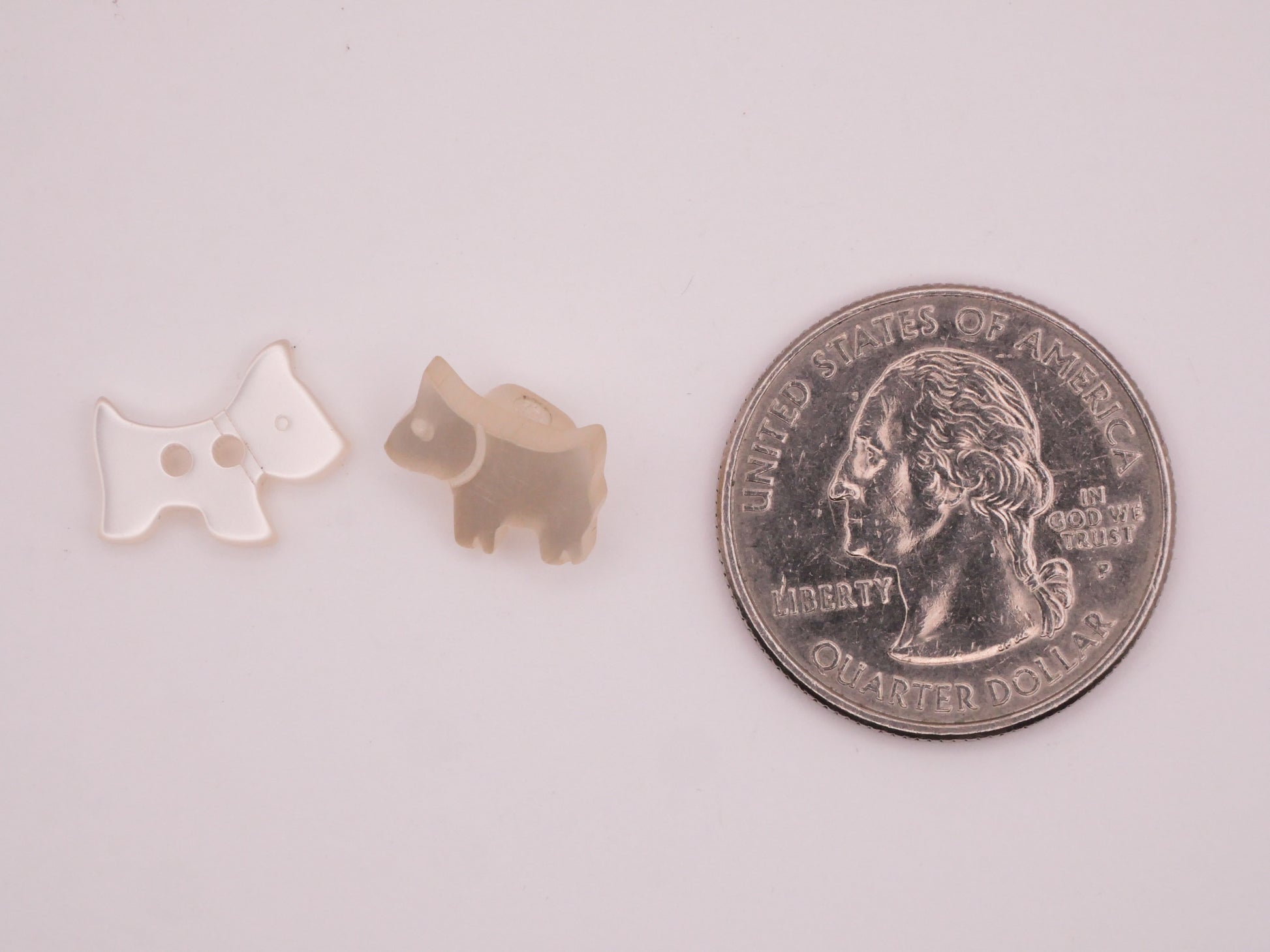 Adorable tiny pearlized plastic scottie dog buttons, choose your favorite. These measure between 9-14mm / .35"-.55". Choose left or right.