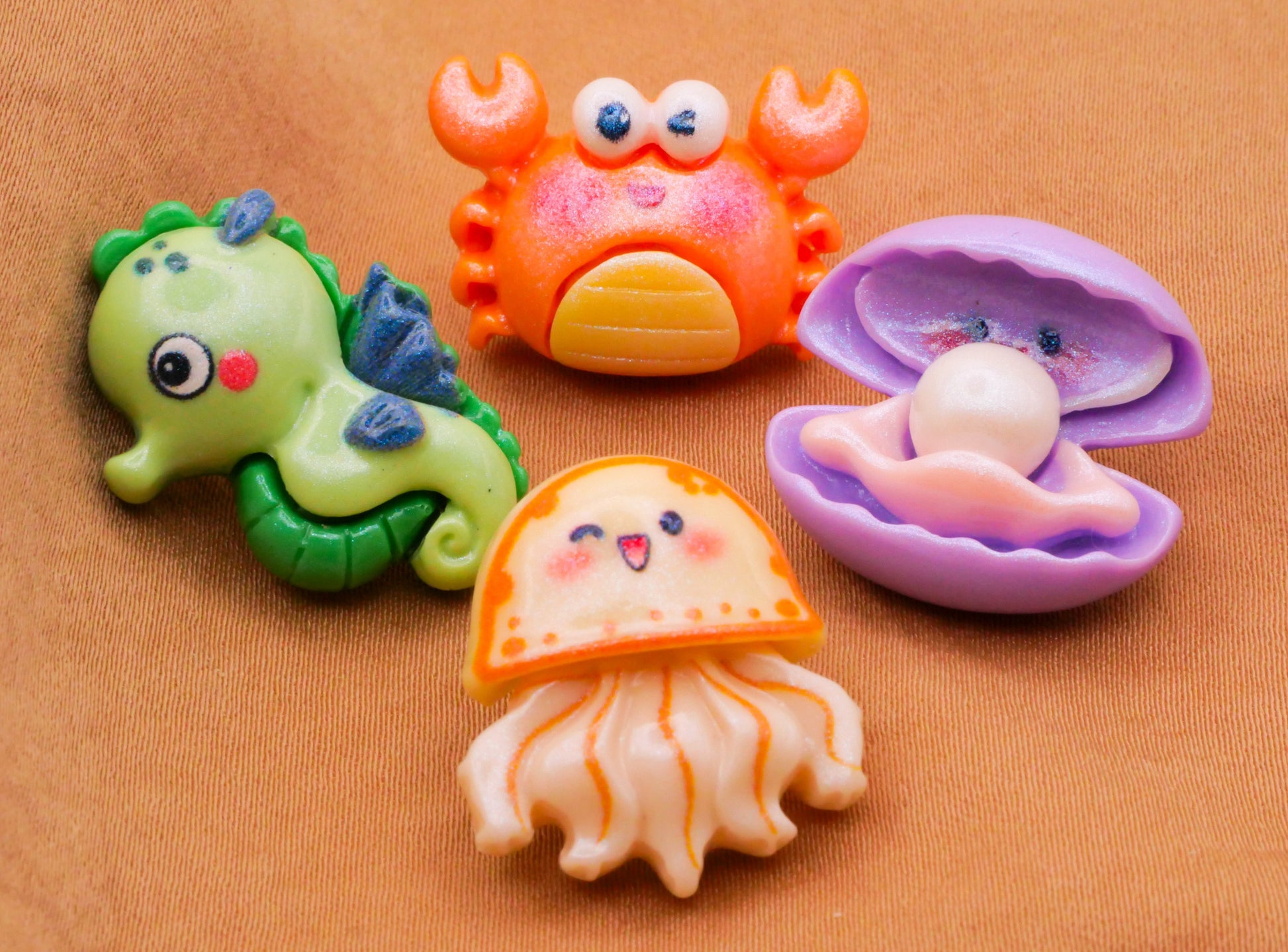 Sea Creatures Crab Jellyfish Oyster Seahorse Plastic Set of Four Buttons 16-25mm